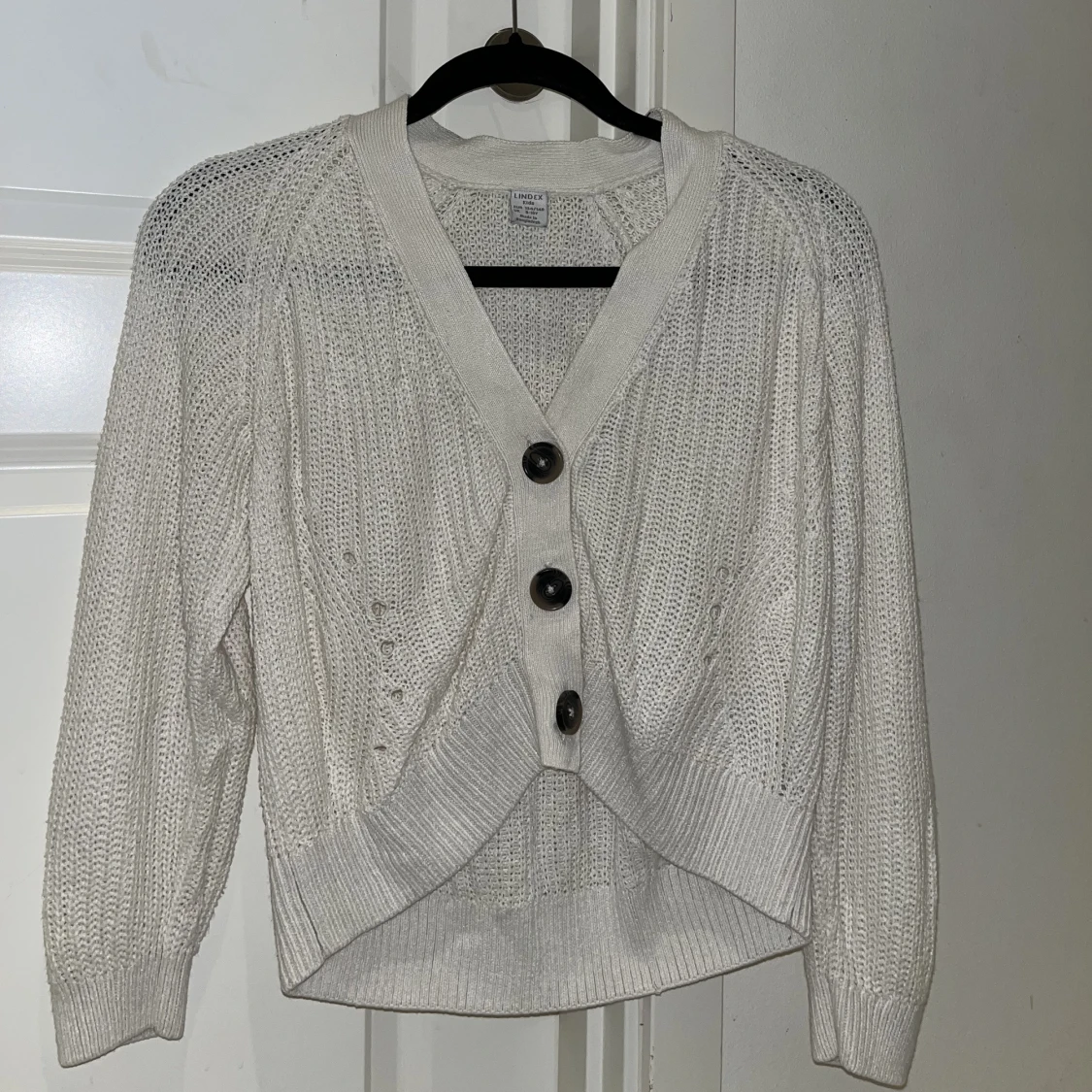 En perfekt vit kofta ifall man känner för att ha en dag där man vill vara varm om kroppen och inte ha något tajt på sig. Den är dock litegenomskinlig då det är bra att man ha ett linne under.