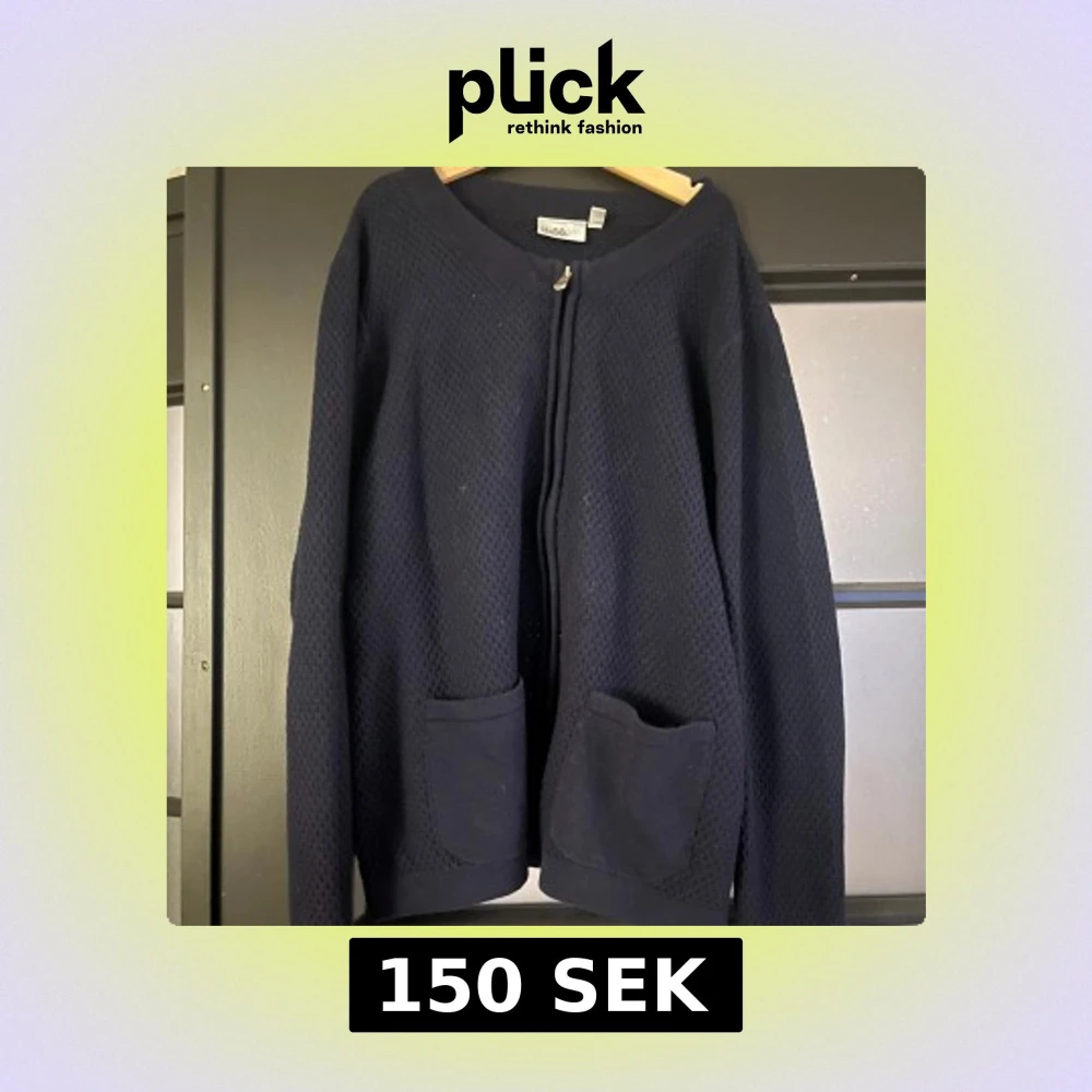 Säljer en mörkblå kofta från Isolde i storlek M. Koftan har ett diskret strukturmönster, två praktiska fickor framtill och stängs med dragkedja. Perfekt för lager-på-lager och passar till många olika outfits.