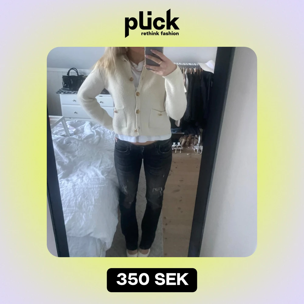 Stickad kofta från Zara med guldknappar i en typ off white färg