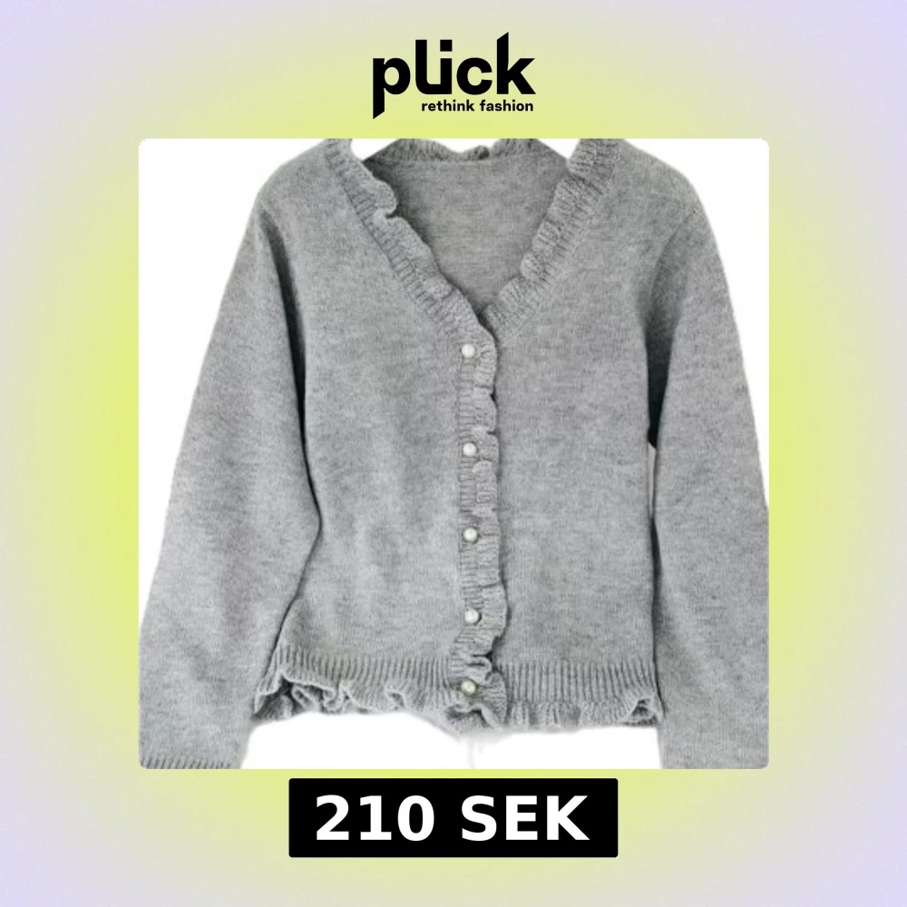 Supersöt grå kofta med volangkant längs v-ringningen och nederkanten. Stängs med pärlknappar framtill och har långa ärmar. Stickad i mjukt material, perfekt för att ge din outfit lite extra. Jättefin, passar mig som har storlek s.nypris runt 500 säljer för 210kr