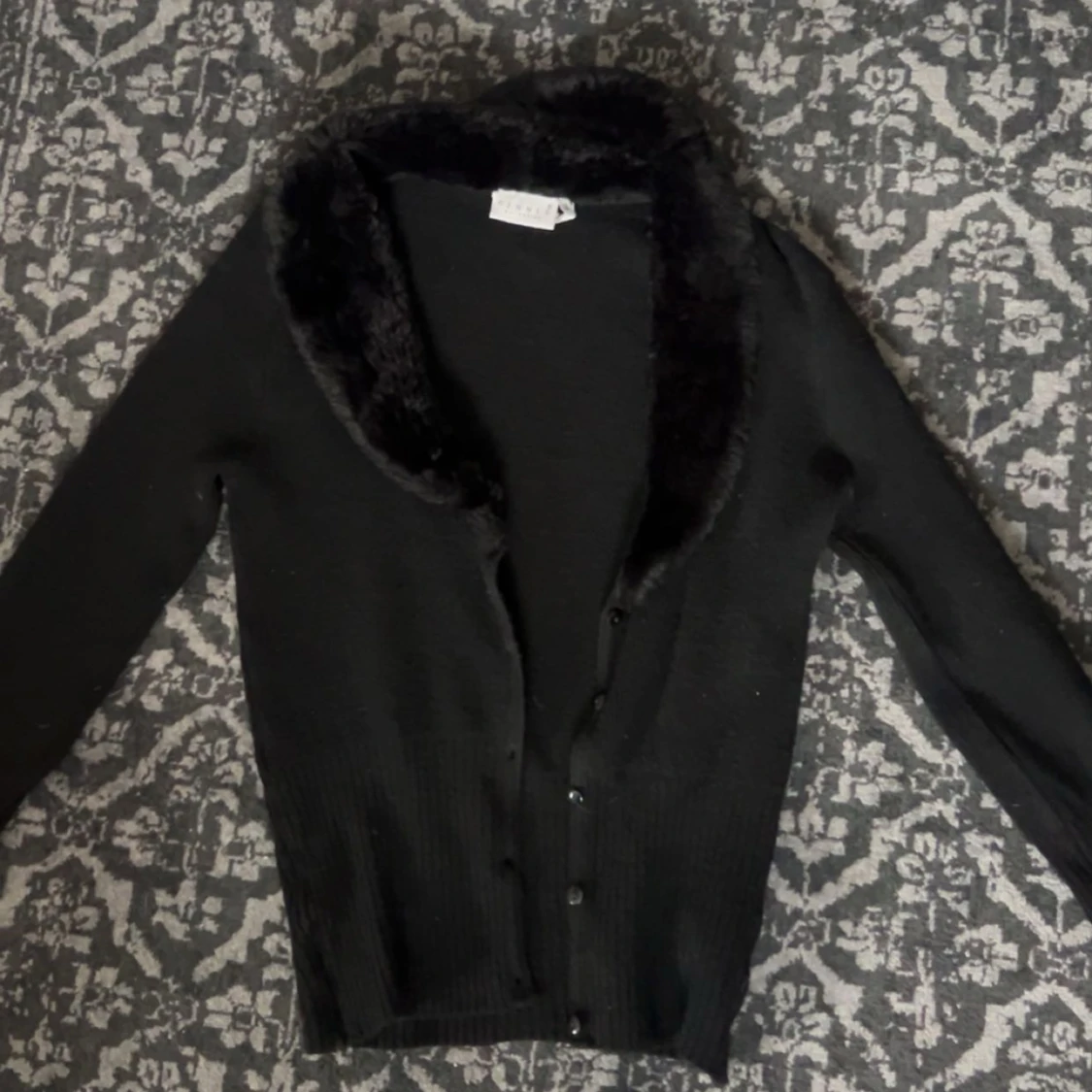 En söt kofta med mjuk päls vid kragen, den går att stänga med knappar.