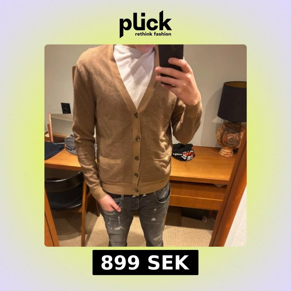 Snygg brun cardigan från Polo Ralph Lauren med diskret rutig mönster. Koftan har v-ringad hals, knappar framtill och två fickor. Materialet är mjuk bomull och passformen är normal. Perfekt att slänga på över en t-shirt för en chill look.