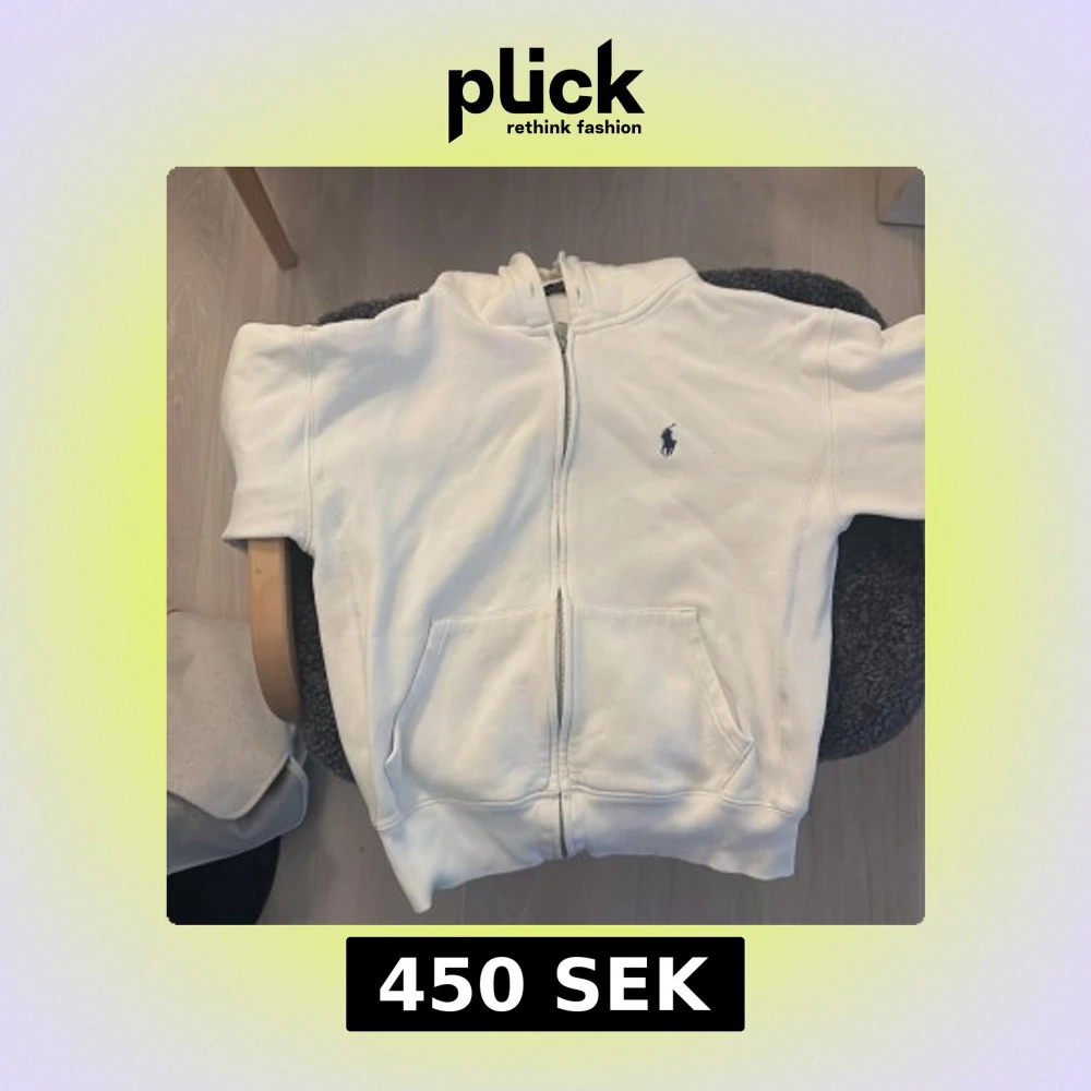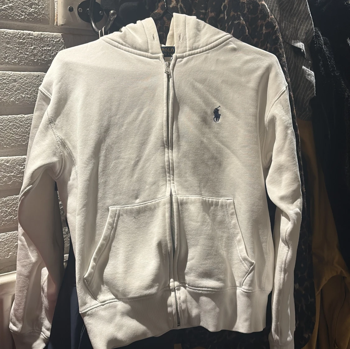 Vit zip up hoodie från Polo Ralph Lauren med dragkedja och huva. Väldigt fint skick endast provad! Supermysig😇