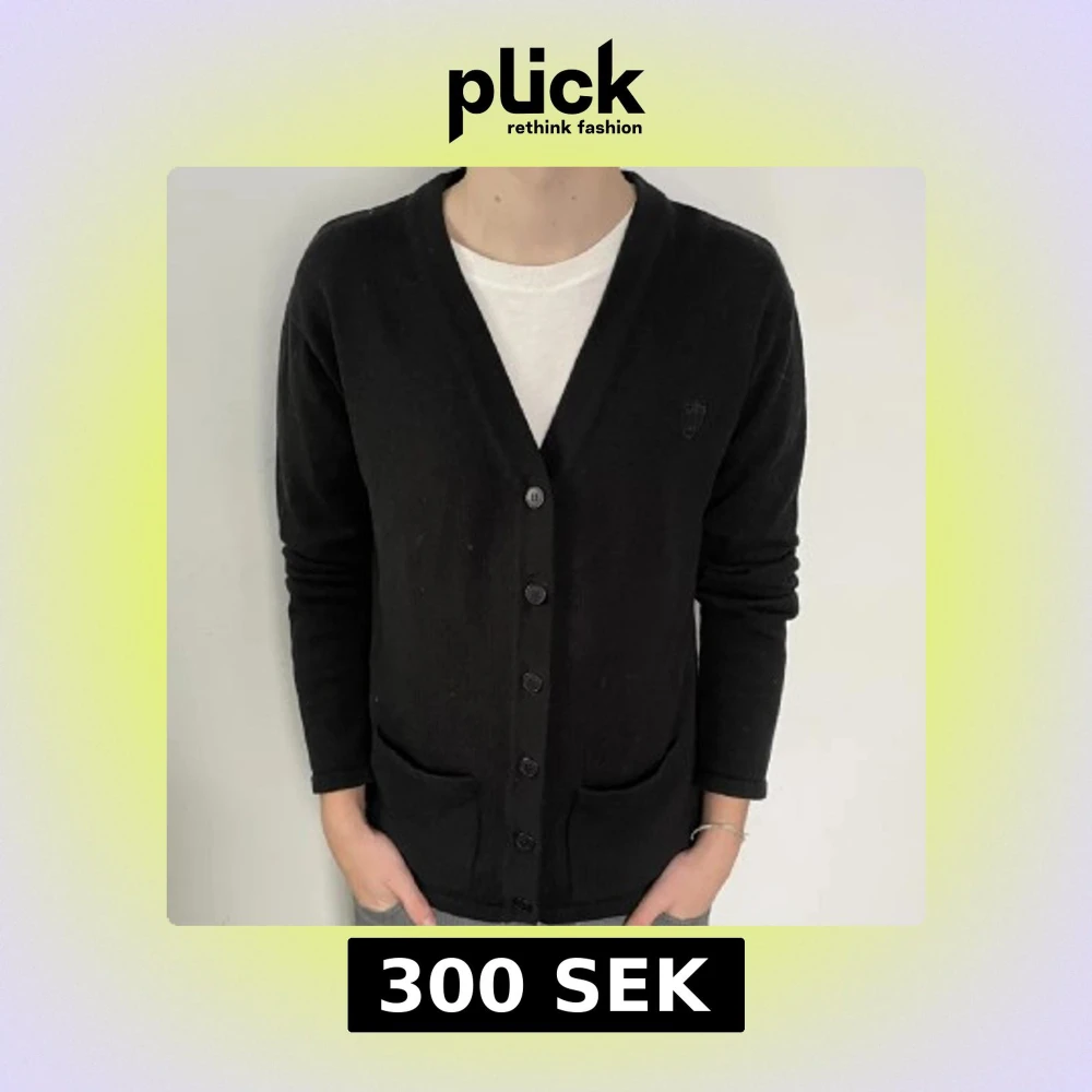 Säljer en stilren svart kofta med knappar framtill. Koftan har långa ärmar och två fickor på framsidan. Perfekt för en avslappnad look.