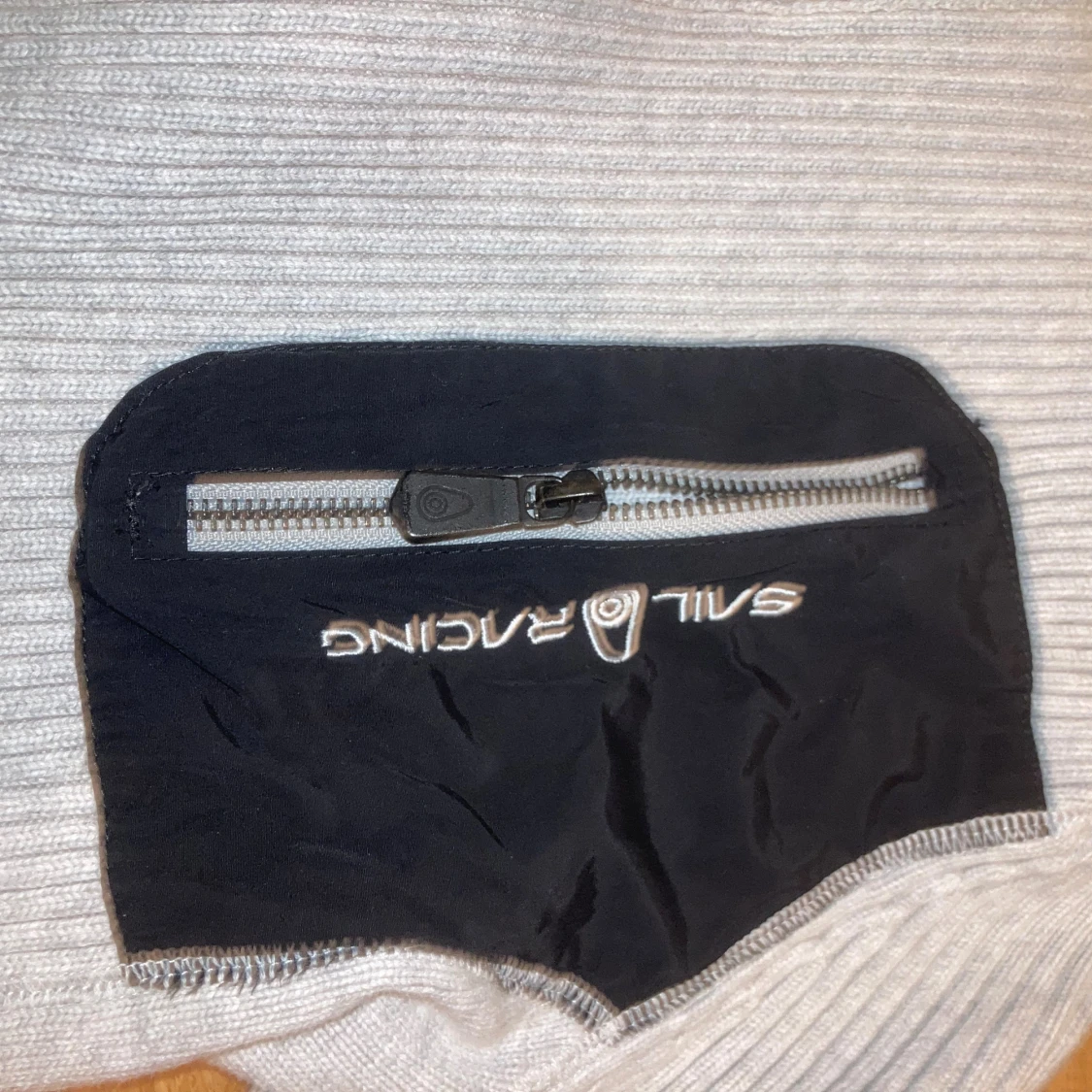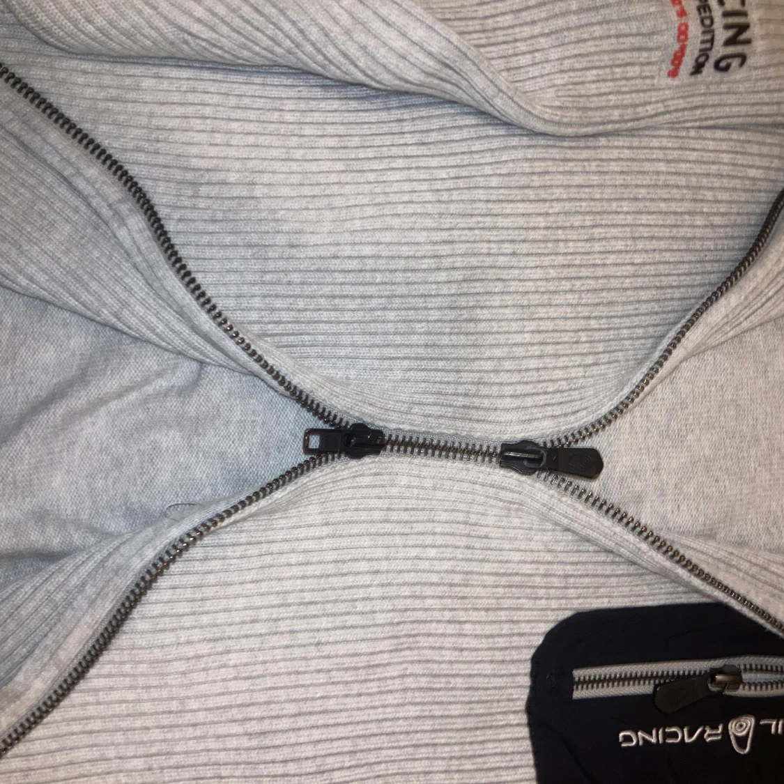 Ljusgrå ribbad kofta från Sail Racing, Antarctica Expedition edition. Tröjan har dragkedja nedifrån och bakifrån och svart bröstficka med dragkedja. Snygga detaljer med patch på nederkanten och tryck på ärmen. Glöm inte att Sail Racing är ett känt klädesmärke!