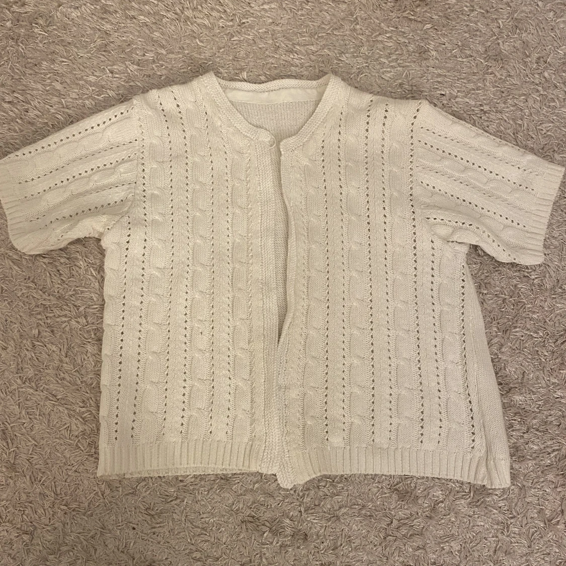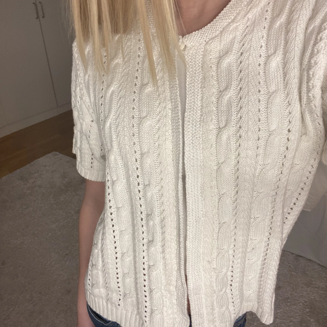Säljer nu denna sååå fina kortärmade koftan. Köpte på loppis där någon hade stickat den, har aldrig använt så den är i bra skick 💕💕skriv för frågor!! Passar mig som vanligtvis har xs/s