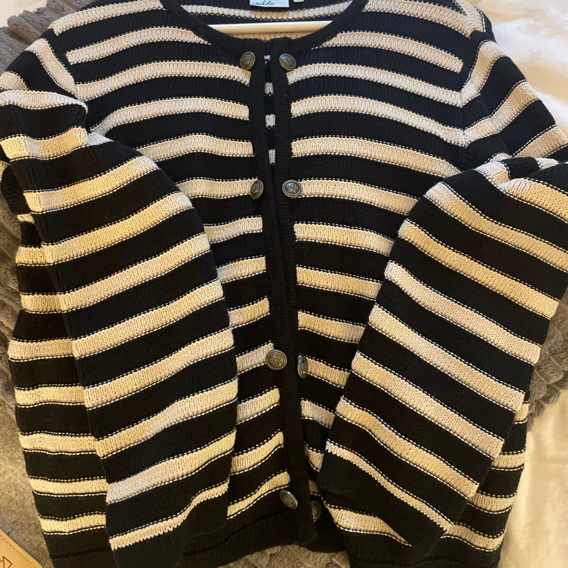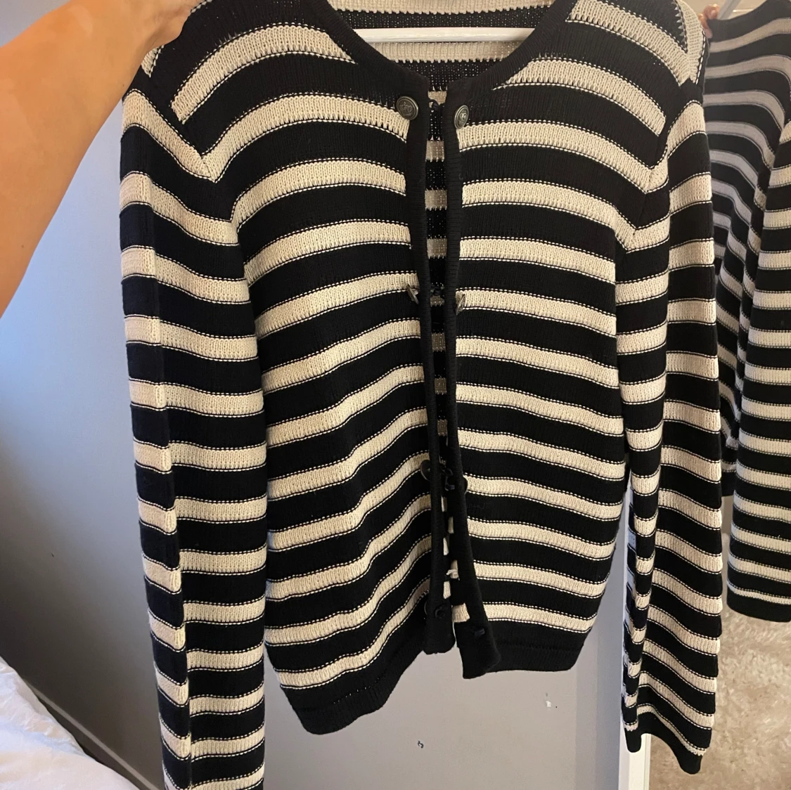Fin kofta med knappar som tyvärr aldrig har kommit till användning. Lappen är bort man den har bara hängt i garderoben 🩷 helt ny!! Storlek L men den passar bra på mig som vanligt vis har s/m. Passformen blir bara lite större vilket jag själv tycker ä