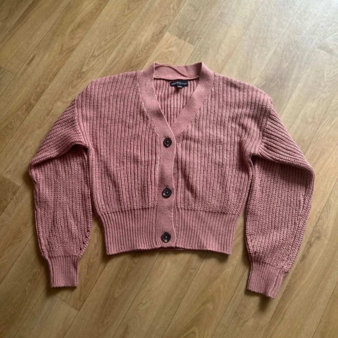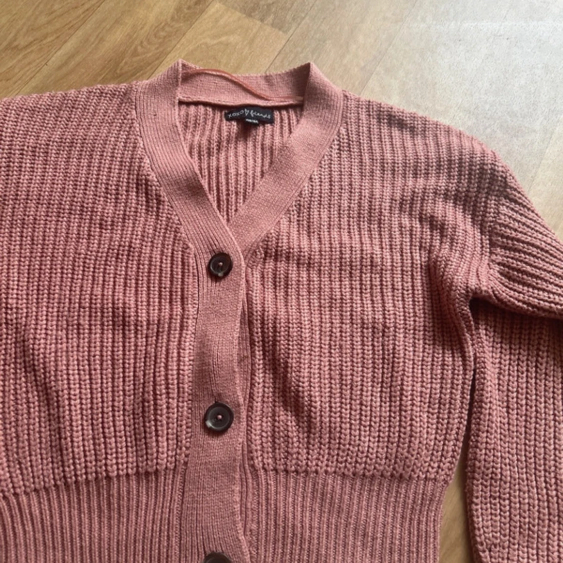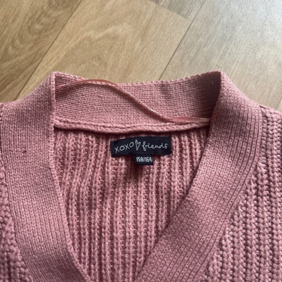 Gullig rosa stickad kofta från XOXO Friends. Den har en croppad passform och ribbade muddar vid ärmslut och nederkant. I storlek 158/164 men passar absolut xs! Få täcken på användning som lite nopprig men inget märkvärdigt! Perfekt till hösten!