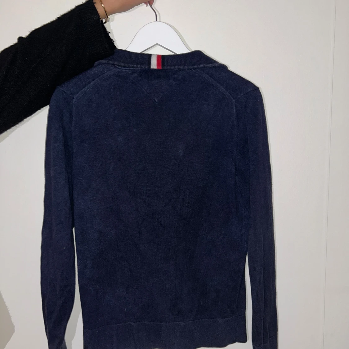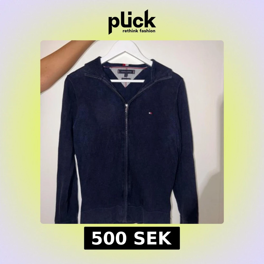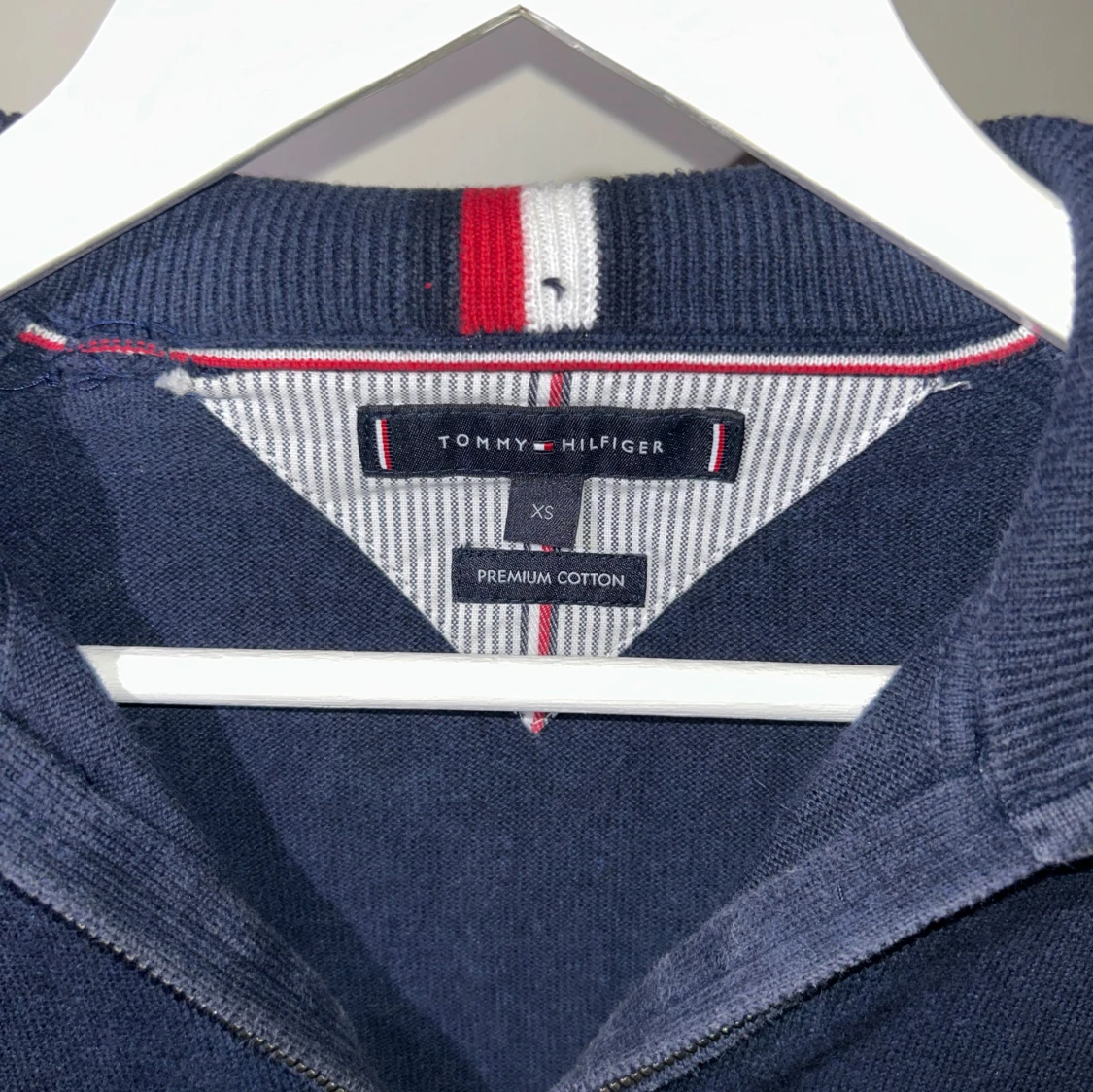 Snygg marinblå kofta från Tommy Hilfiger i premium bomull. Dragkedja framtill, liten broderad logga på bröstet och ribbade muddar. Perfekt för lager-på-lager och stilren look.