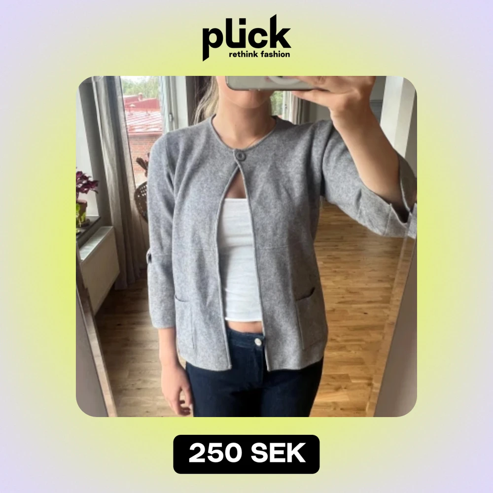 Trekvartsärmad kofta med rosetter på ärmarna. Knäpps med en knapp. Så fin till hösten!! Skicket är mycket bra🩷