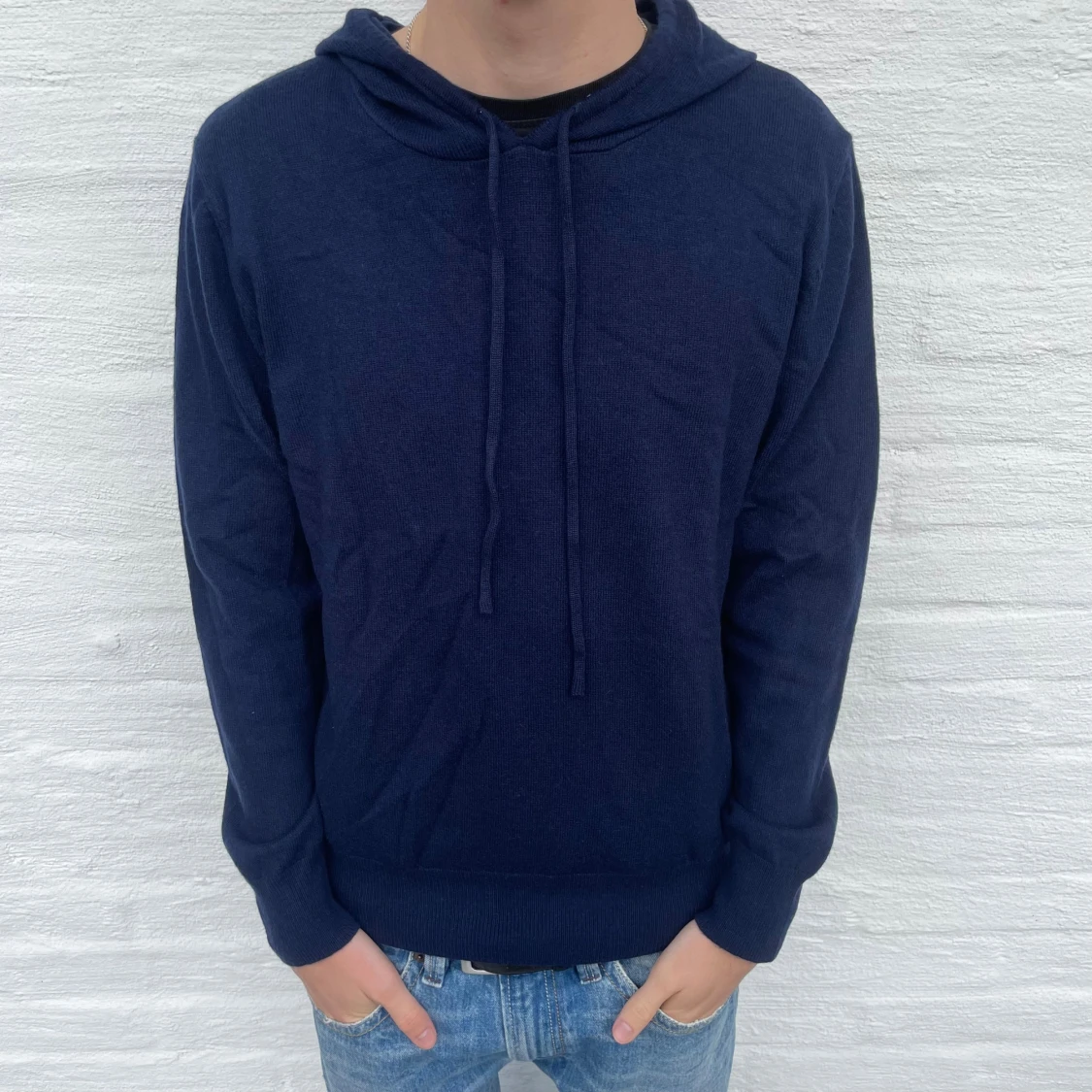 Skitsnygg Kashmir/Merinoull Hoodie i en mörkblå färg!🌟 Storlek S, modellen är 179 lång! Använd 2-3 gånger, inga tecken på användning! Hör av dig vid intresse eller minsta fundering🙏