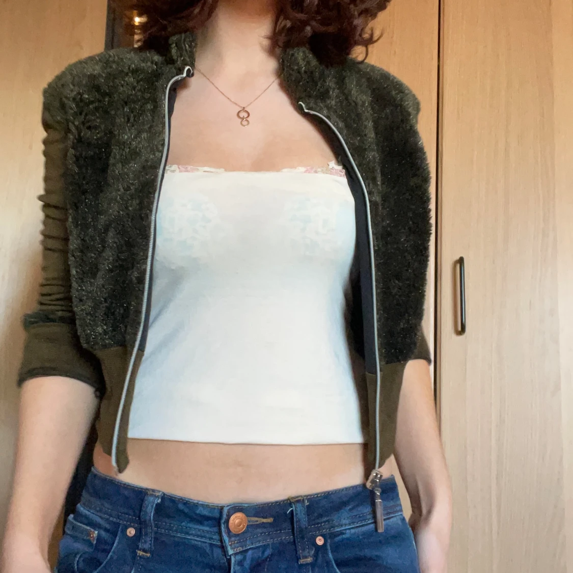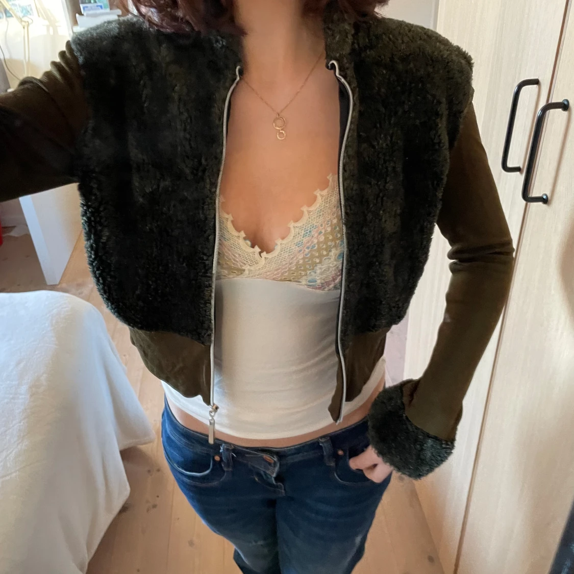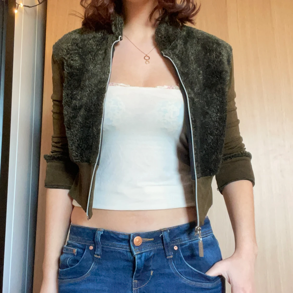 Superfin med fluffiga detaljer och dragkedja💖 passar vår, mörkgrön❤️
