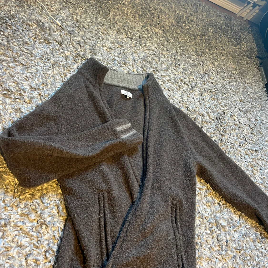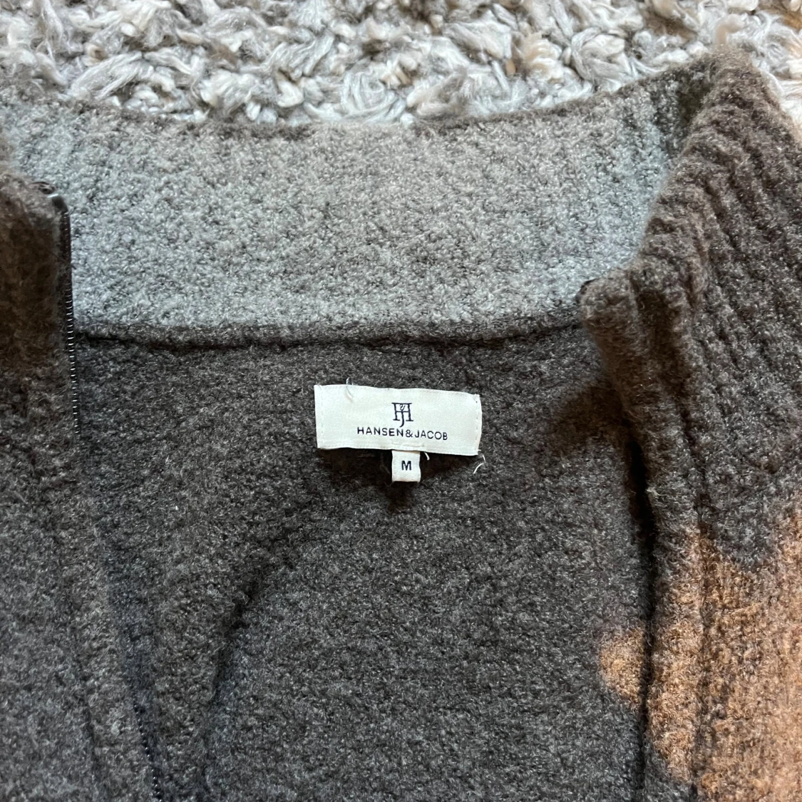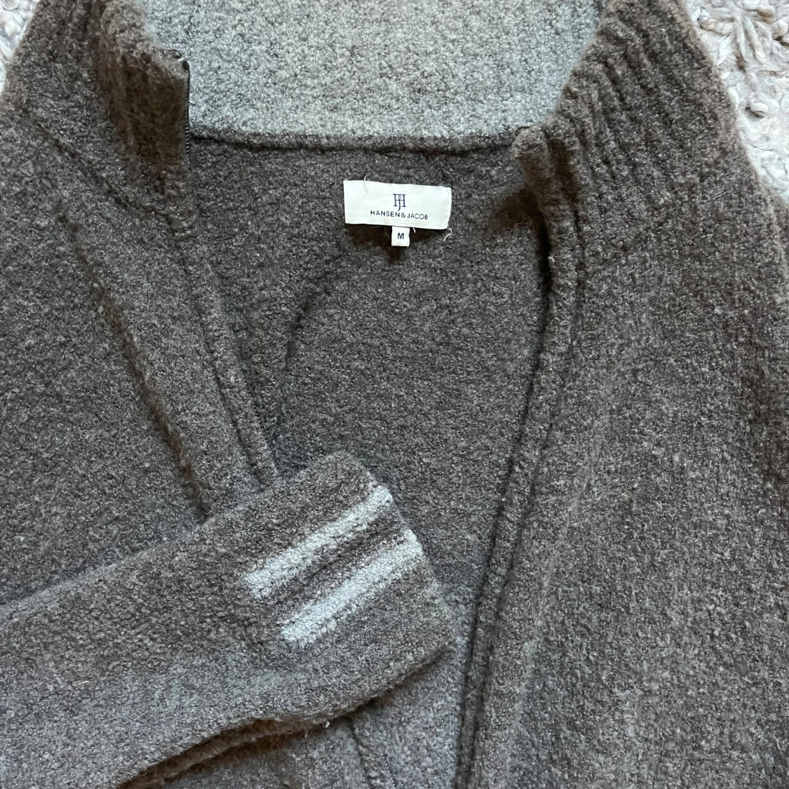 Mysig grå/brun kofta från Hansen & Jacob i storlek M. Koftan är i cashmere och har dragkedja framtill och ribbade muddar. Ärmarna har två ljusare ränder vid mudden för en detaljerad och stilren look. Perfekt nu till hösten!