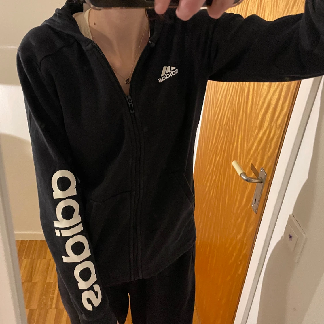 en kofta från adidas med dragkedja och luva i storlek XS