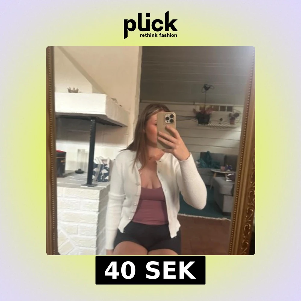 Supersöt vit kofta från Zara med pärlknappar som ger en lyxig känsla. Koftan är stickad, har rund halsringning och långa ärmar.