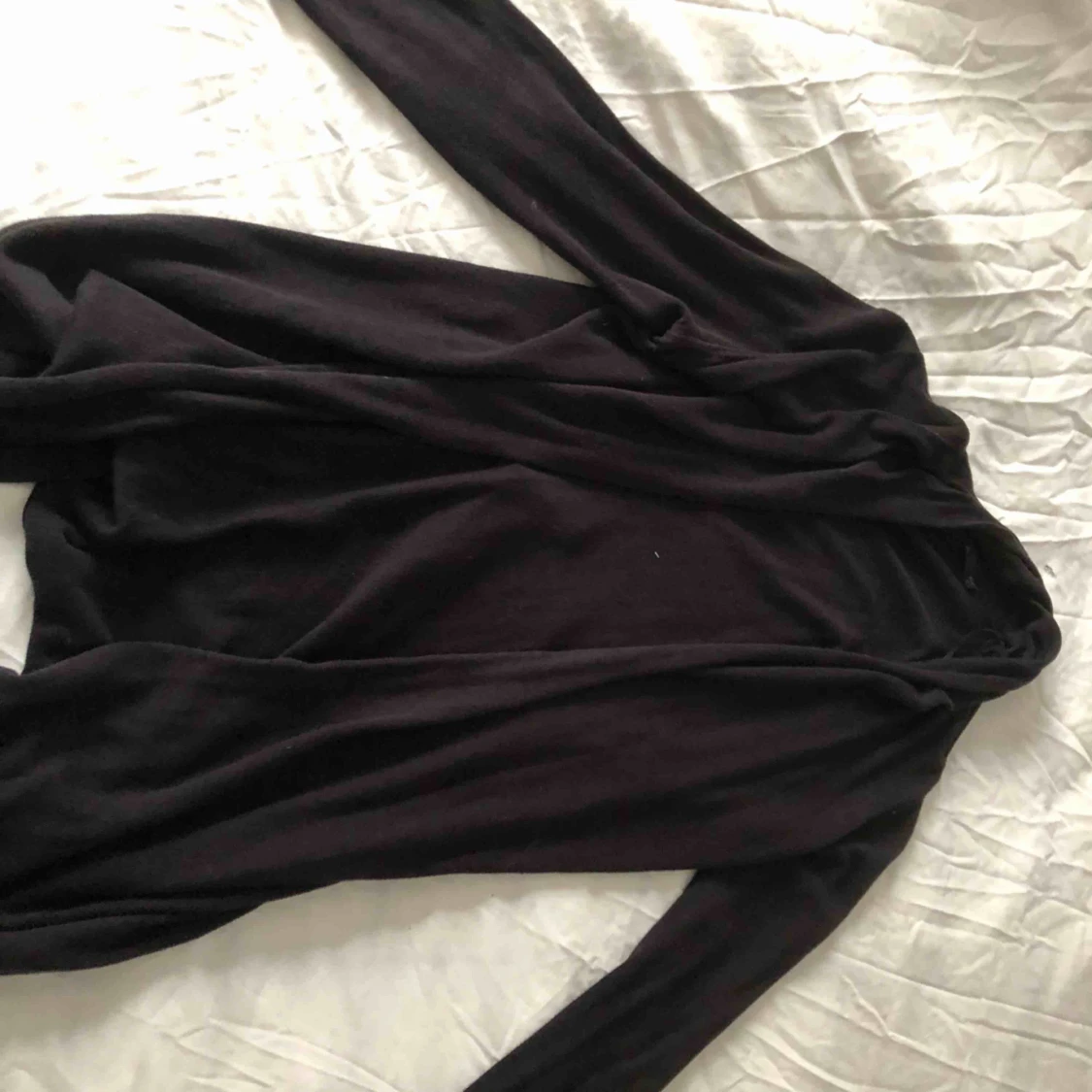 Vit omlottkofta från Gina tricot - Mysig vit omlottkofta från Gina tricot  med knyt i sidan och djup v-ringning. Koftan är stickad och har långa ärmar samt ribbade kanter vid hals och nederkant. Perfekt för lager-på-lager och chill dagar.
