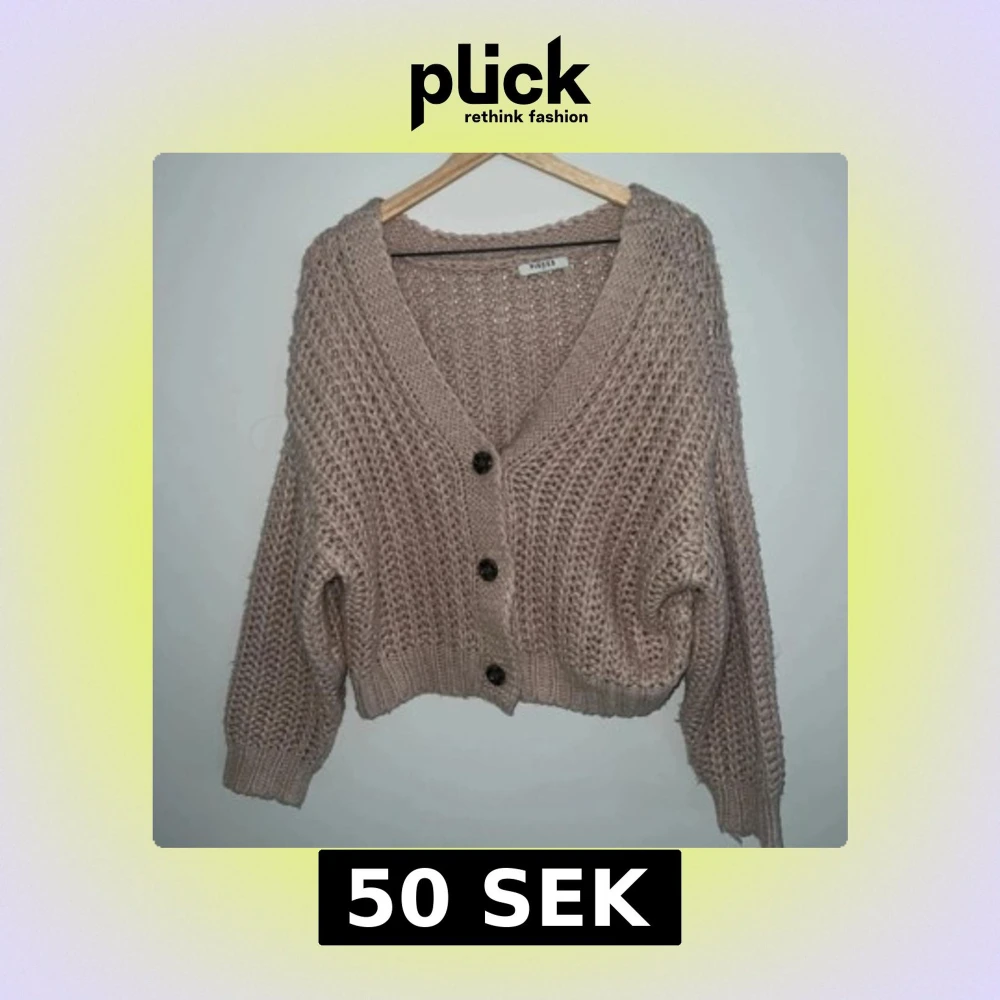 Supermysig ljusrosa stickad kofta från Pieces med stora knappar framtill och djup v-ringning. Koftan har en loose passform, långa ärmar och grovstickad struktur som ger en chill vibe. Perfekt att slänga över en topp när det är kyligt ute. Lite nopprig