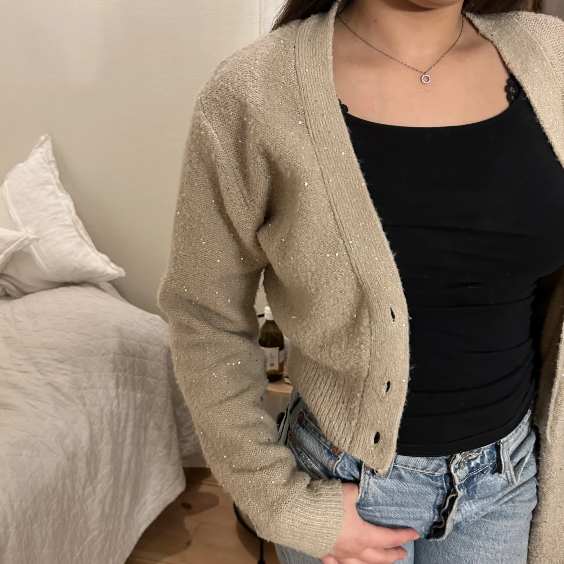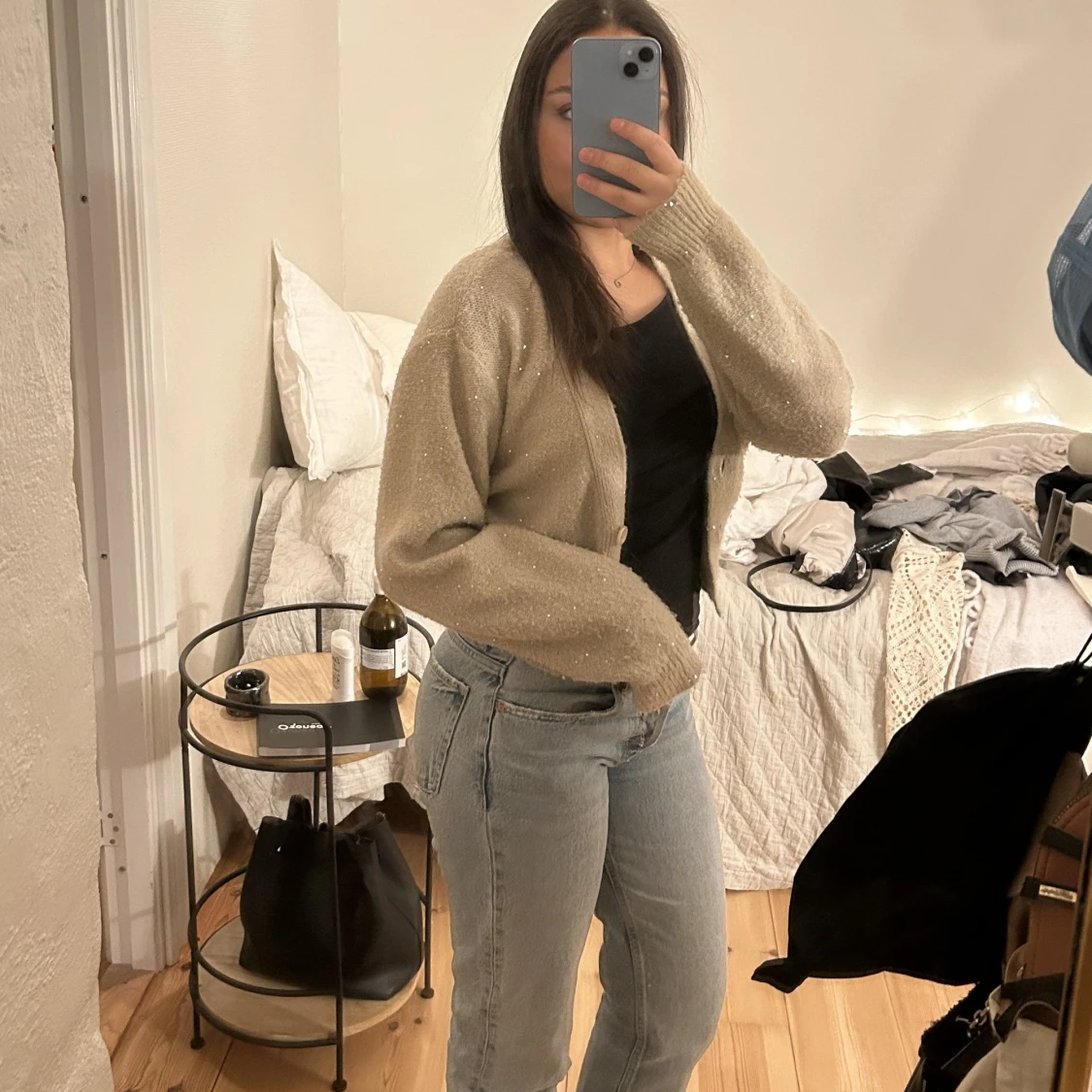 Snygg glittrig beige kofta från NAKD - oanvänd 150kr Köpare står för frakt / mötas i Uppsala Säljer mer kläder, vid köp av fler plagg kan paketpris ordnas