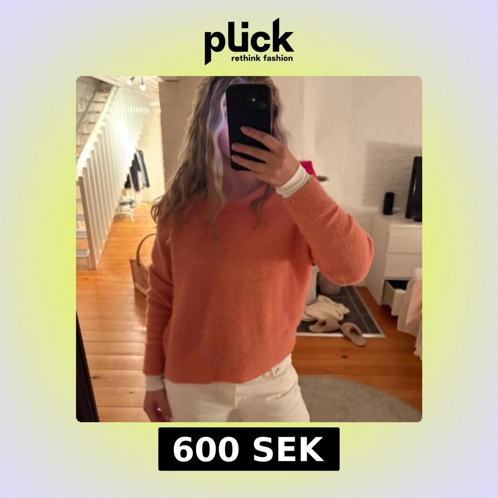 Mysig stickad tröja från Samsøe Samsøe i en korall/rosa färg. Rund halsringning och långa ärmar med ribbade muddar. Nypris 1200