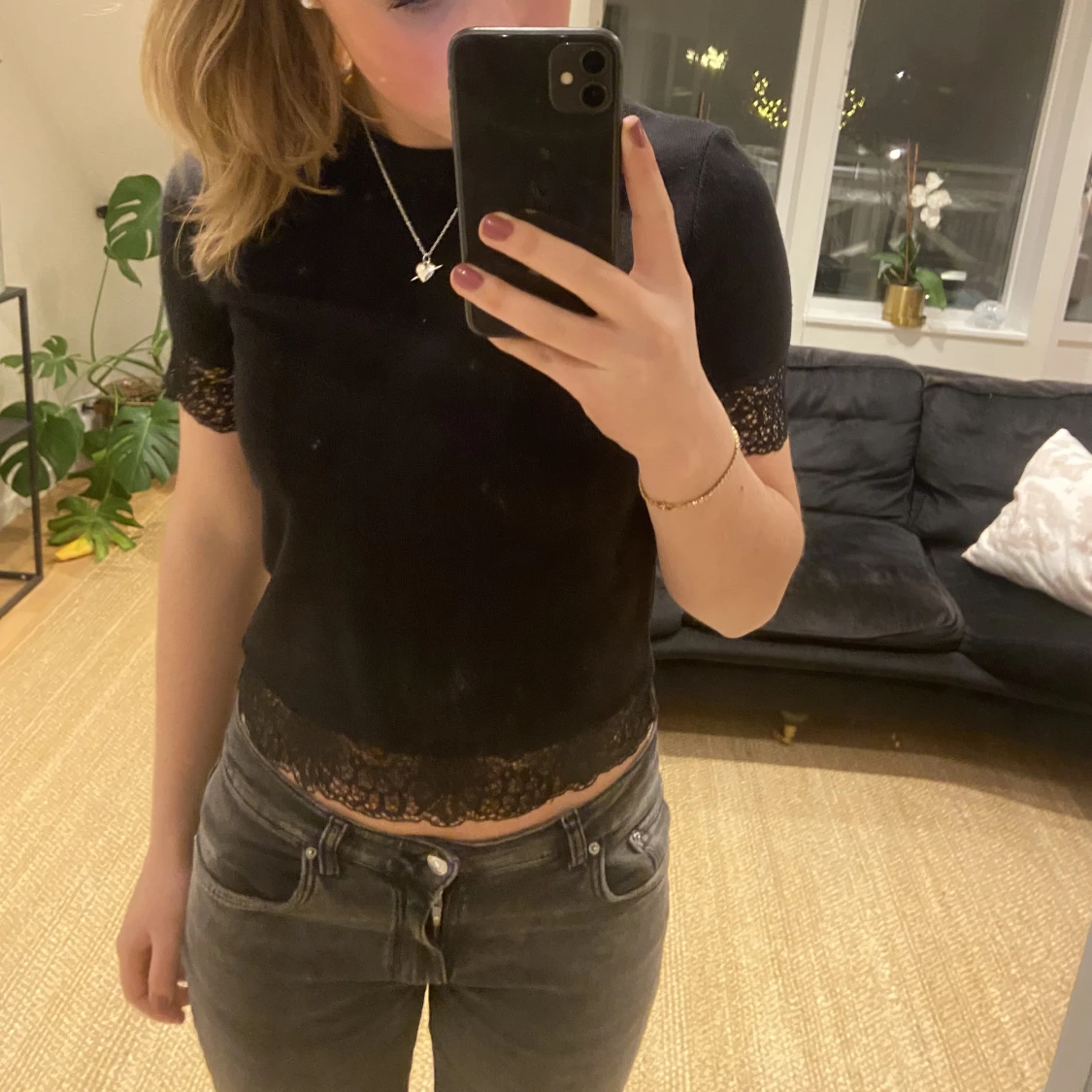 Super fin kortärmad tröja med spets på ärmarna och spets runt kanten på tröjan💓