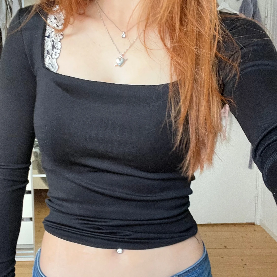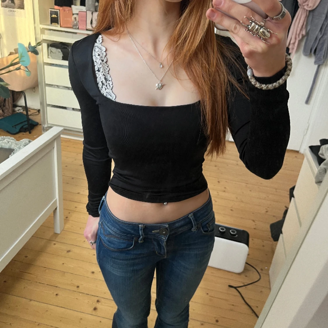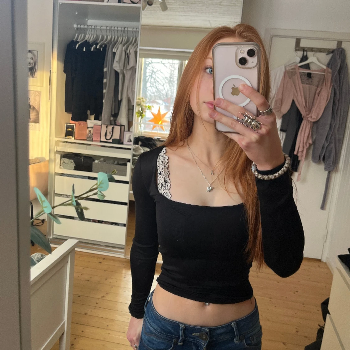 Säljer denna svarta långärmade T-shirt med lite fyrkantig urringning💞💞 Dm vid intresse/frågor