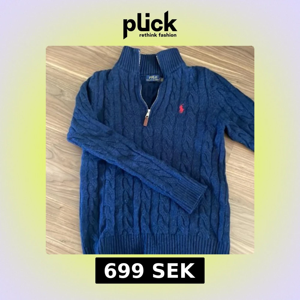 Säljer en marinblå kabelstickad tröja från Polo Ralph Lauren med halv dragkedja och röd broderad logga på bröstet. Tröjan har hög krage och långa ärmar, perfekt för kyliga dagar. Den passar tyvärr inte mig längre. Passar storlek S 100%.