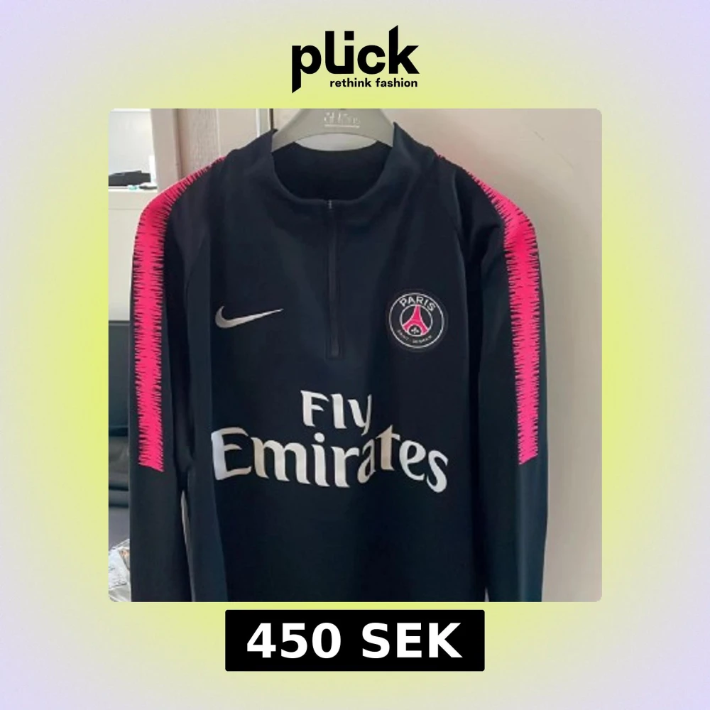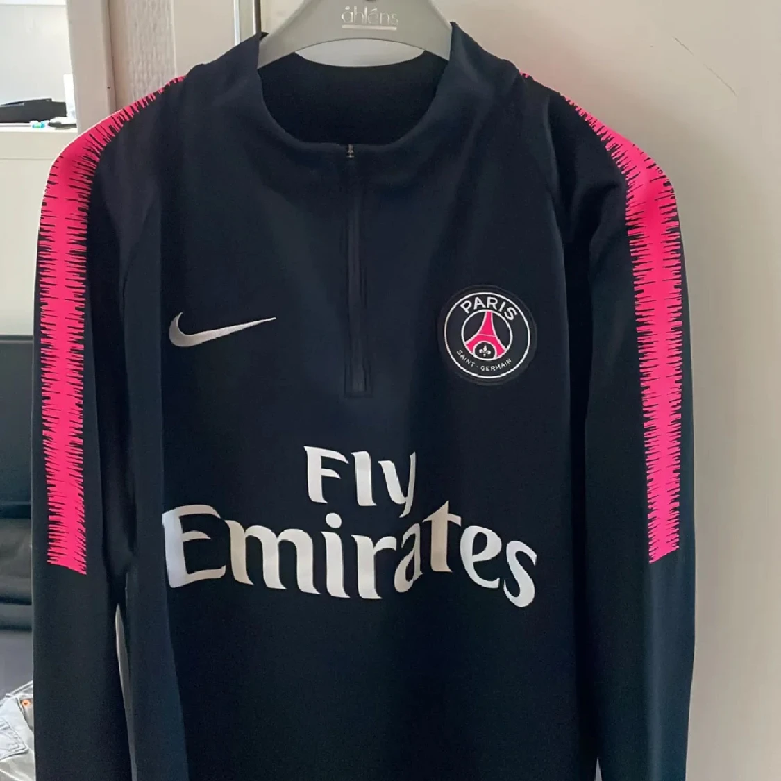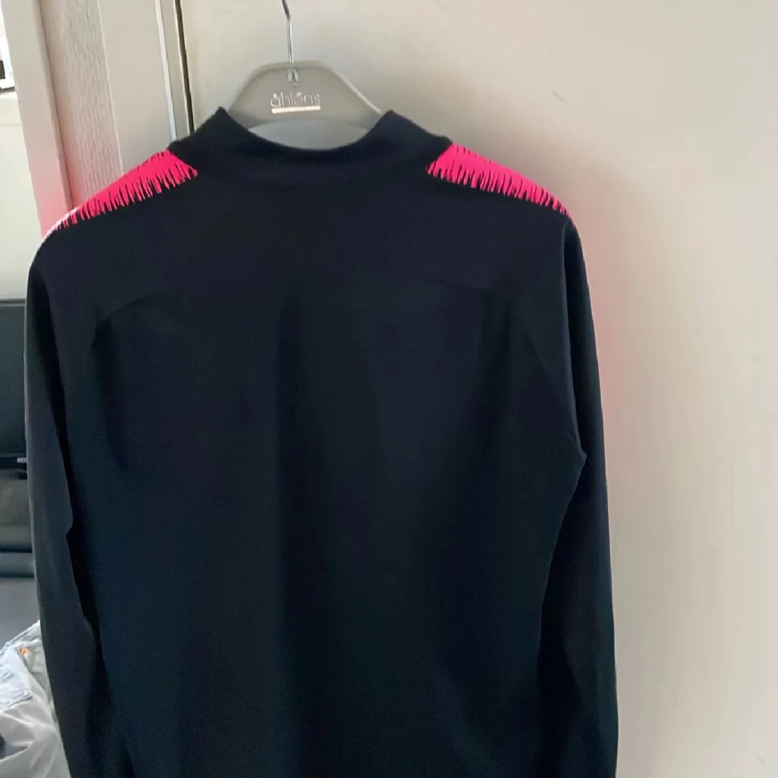 Paris Saint-Germain långärmad träningströja från Nike i svart med rosa detaljer längs ärmarna. Tröjan passar både killar och tjejer. Storlek M men passar S
