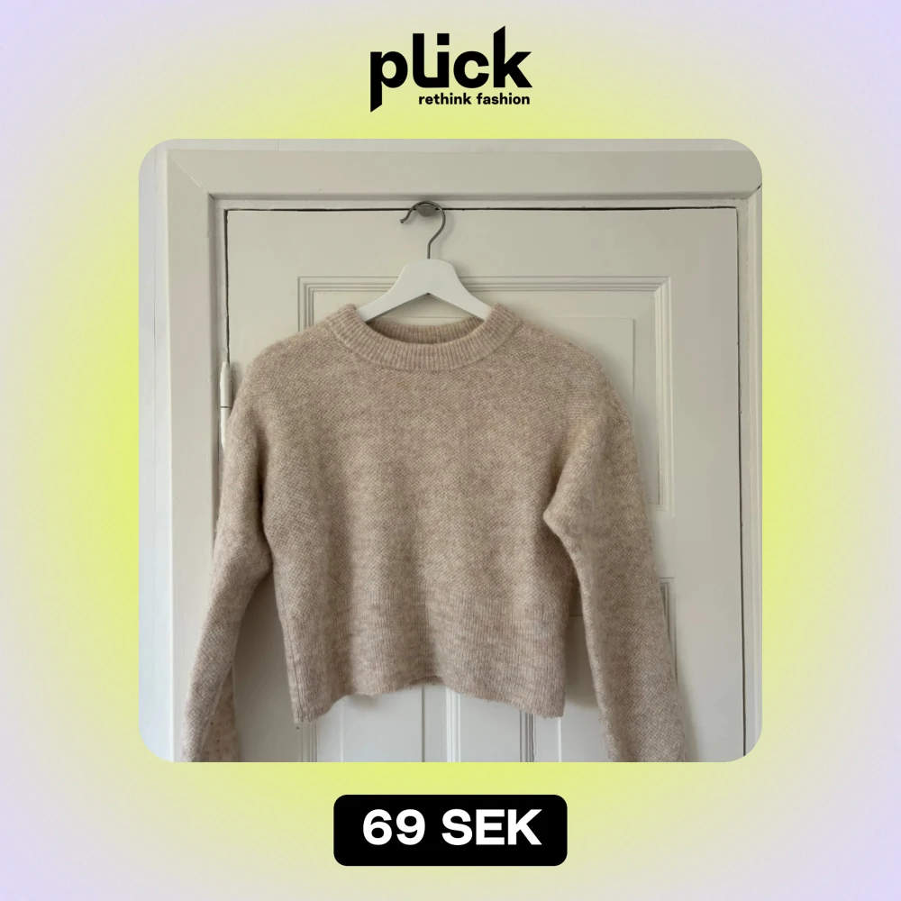 Mysig beige stickad tröja från Lindex i storlek XS. Perfekt för kyliga dagar med sin croppade design och långa ärmar. Tröjan har en enkel och stilren look som passar till det mesta. Ett måste i garderoben för höst och vinter! 🍂