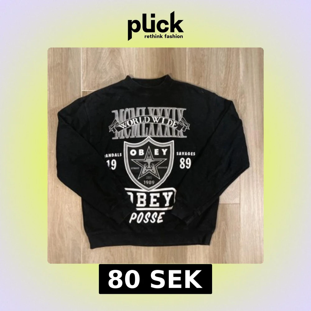Cool svart sweatshirt från Obey med stort vitt tryck framtill, inklusive logga och text. Tröjan har rund hals och långa ärmar, perfekt för dig som gillar streetwear och vill sticka ut med en unik design.