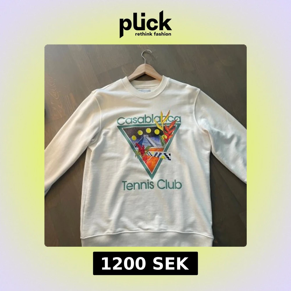 Säljer en vit sweatshirt från Casablanca med färgglatt tryck framtill och texten 'Tennis Club'. Tröjan har rund halsringning och långa ärmar. Perfekt för dig som gillar unika prints och sportig stil.