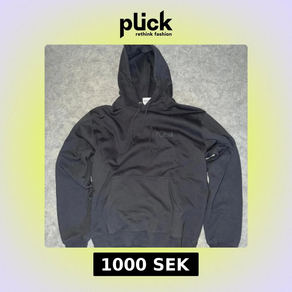 Säljer en svart hoodie från Polar med en stor logga på ryggen och en mindre på bröstet. Den har en klassisk känguruficka och justerbar huva. Perfekt för en avslappnad stil.