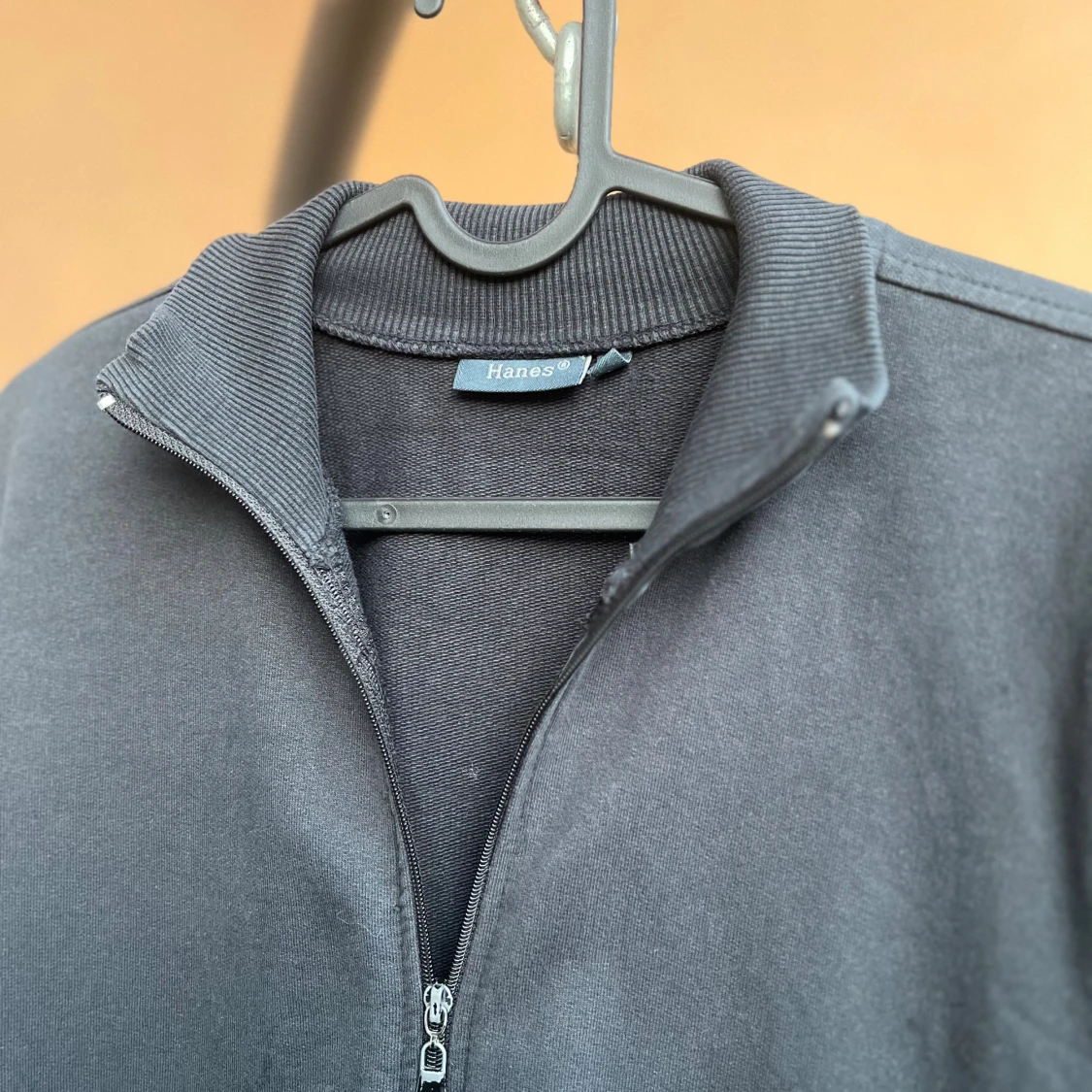 En svart långärmad ziptröja från Hanes med hög krage och ribbade muddar. Tröjan är i bomullsmaterial och har en enkel, clean look med dragkedja framtill. Perfekt för lager-på-lager och chill dagar. Storlek L sitter som M.