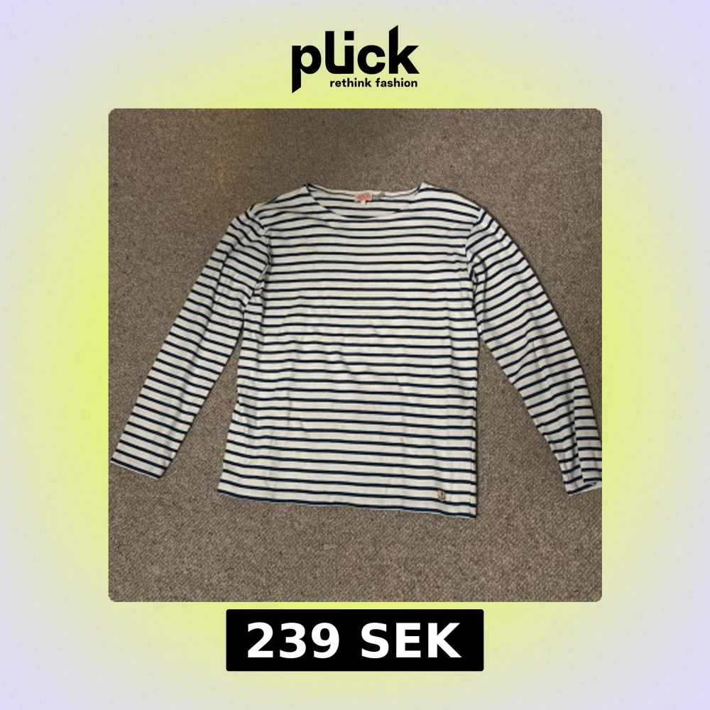 Säljer en klassisk långärmad tröja från Armor Lux i storlek L. Tröjan är vit med marinblå horisontella ränder och har en rund halsringning. Tillverkad i mjuk bomull, perfekt för dig som gillar fransk stil och vill ha en chill look.
