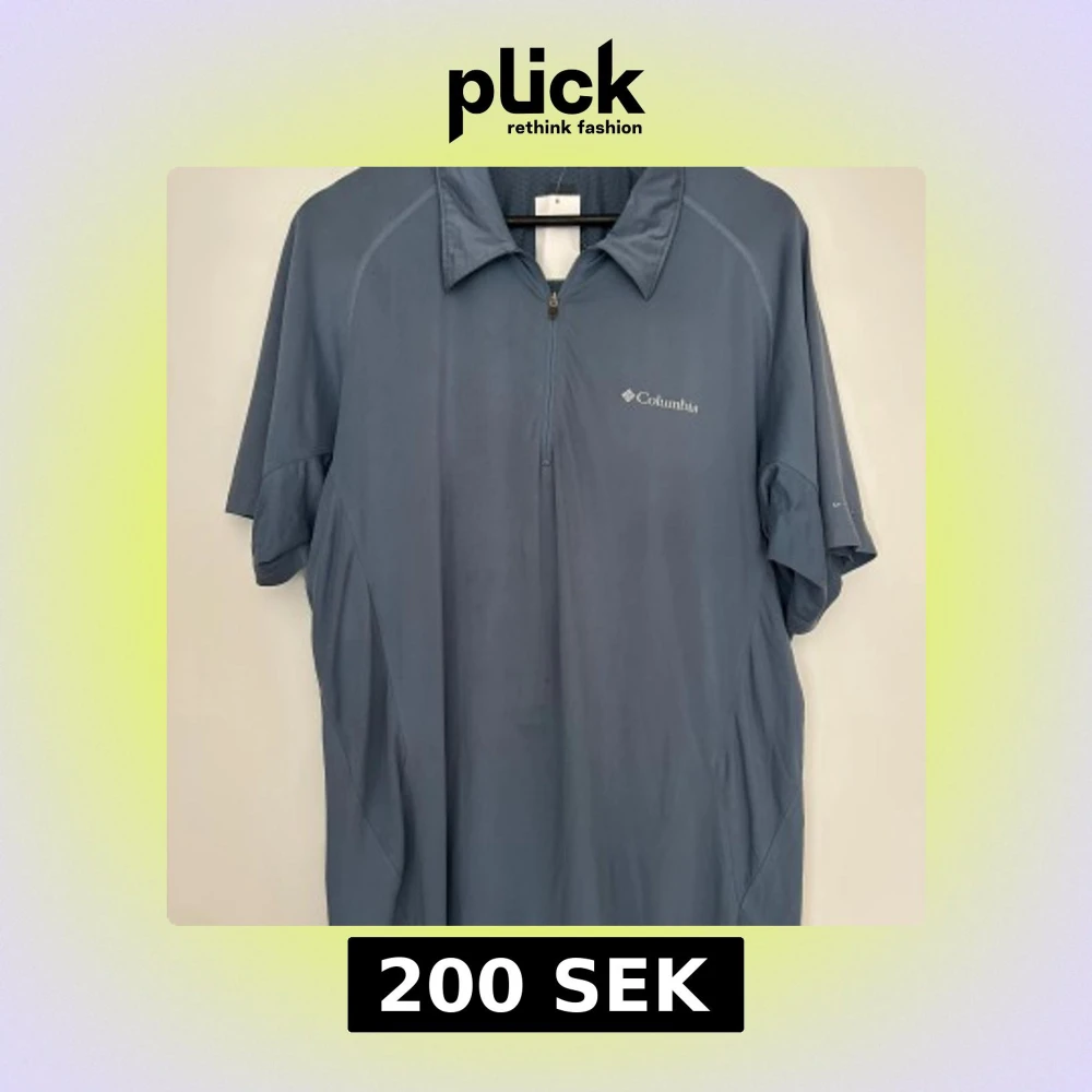 Säljer en blå funktionspiké från Columbia med halv dragkedja och korta ärmar. Perfekt för träning eller utomhusaktiviteter. Materialet är lätt och andas bra. Diskret logga på bröstet och sportig design.