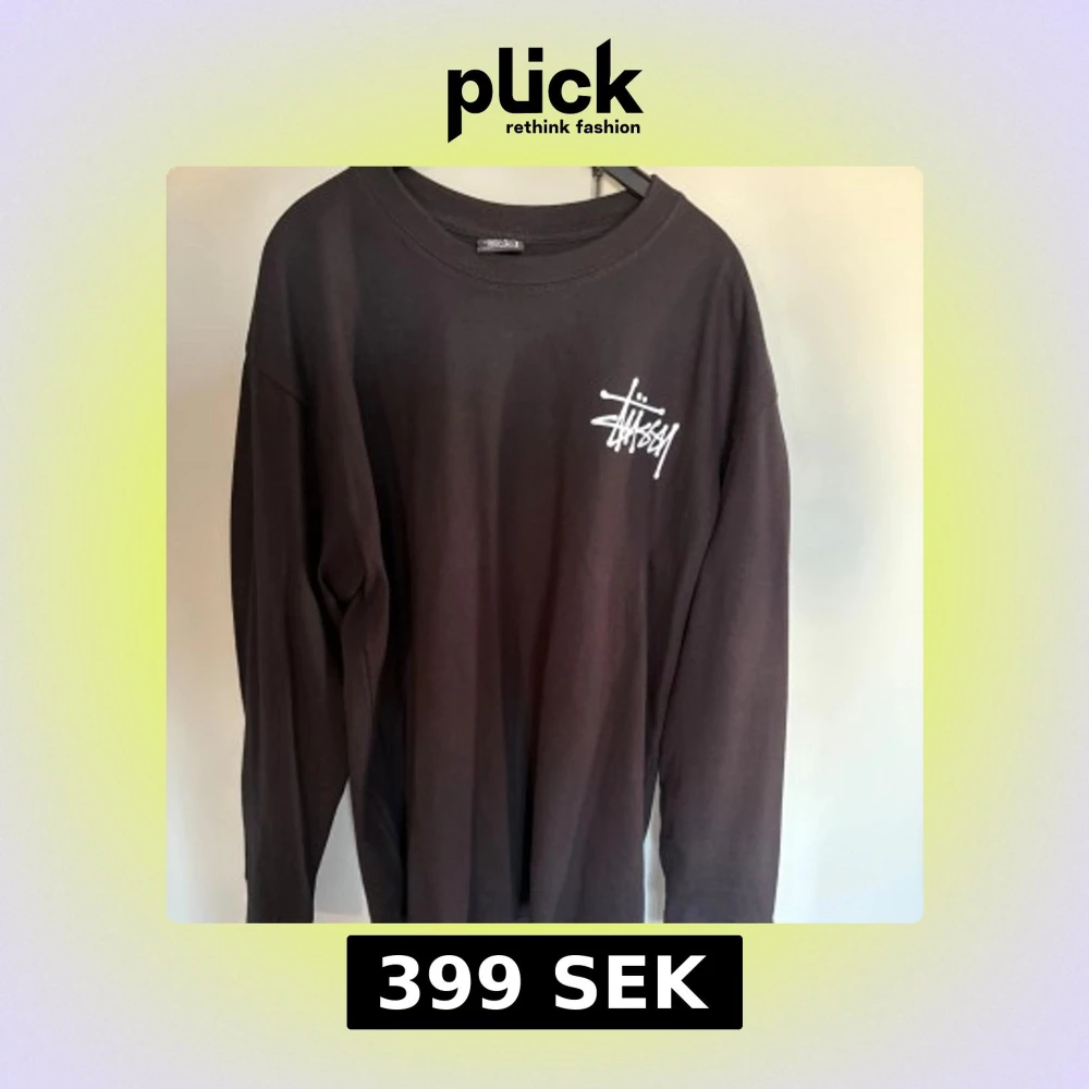 Svart långärmad tröja från Stüssy med stort vitt logotryck på ryggen och mindre logga på bröstet. Tröjan har en klassisk rund hals och är gjord i mjuk bomull som är skön mot huden. Perfekt för dig som gillar streetwear och vill sticka ut med en ikonisk look.