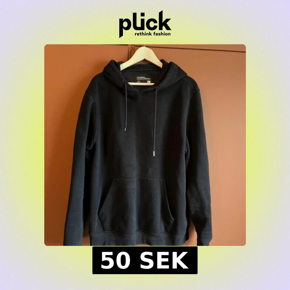 Säljer en stilren mörkblå hoodie från Sustainable Clothing Essentials. Den har en klassisk design med huva och dragsko samt en praktisk magficka.