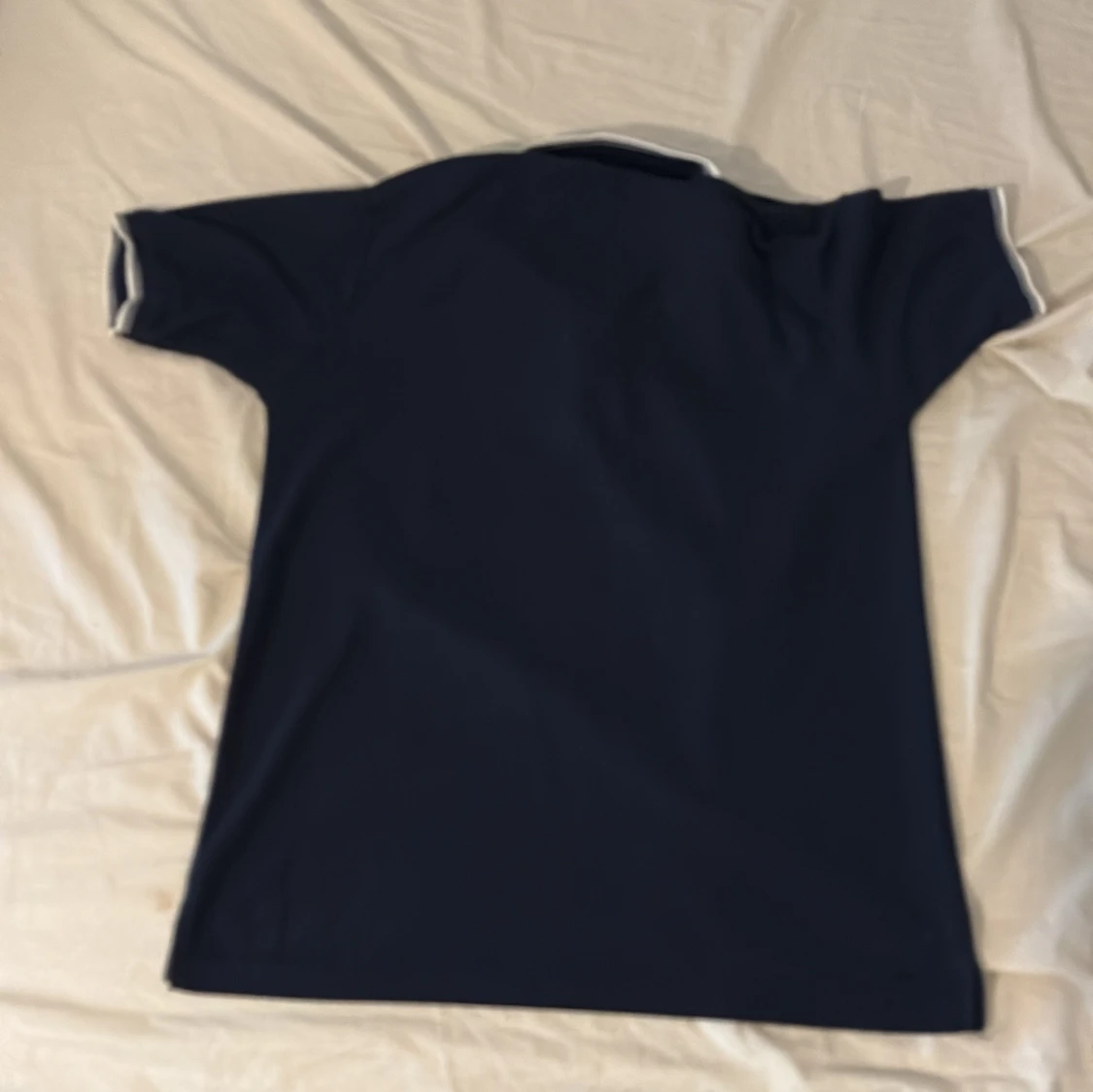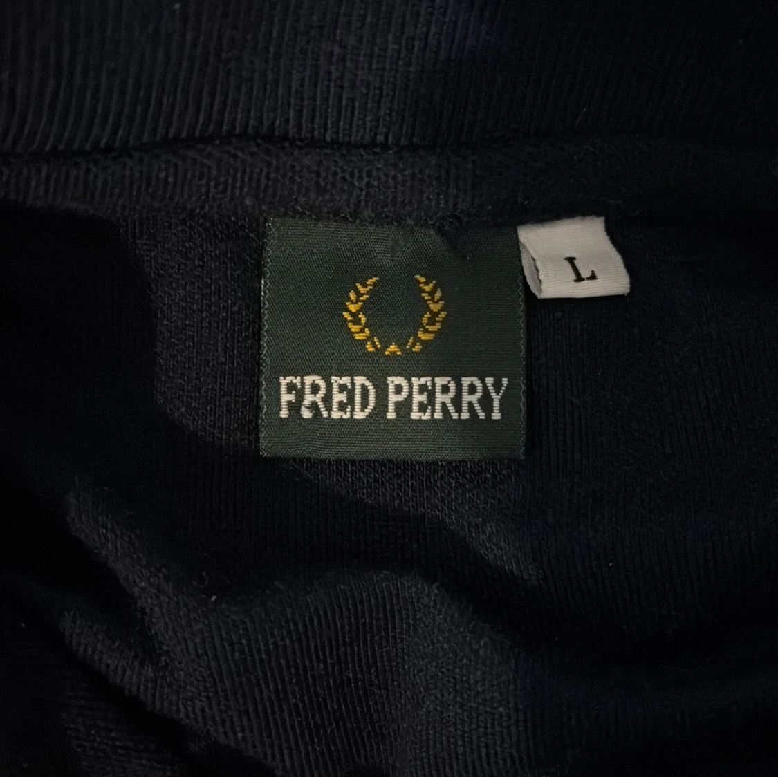 Snygg mörkblå pikétröja från Fred Perry i storlek L. Klassisk design med vit logga broderad på bröstet och vita detaljer på krage och ärmslut. Tröjan har korta ärmar och är gjord i mjuk bomull, perfekt för en clean och sportig look.