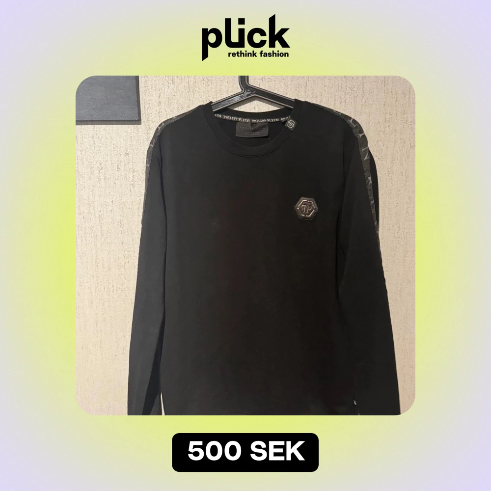 Säljer en stilren svart tröja från Philipp Plein med deras ikoniska logga på bröstet. Tröjan har långa ärmar och en bekväm passform. Perfekt för både vardag och fest. 🖤