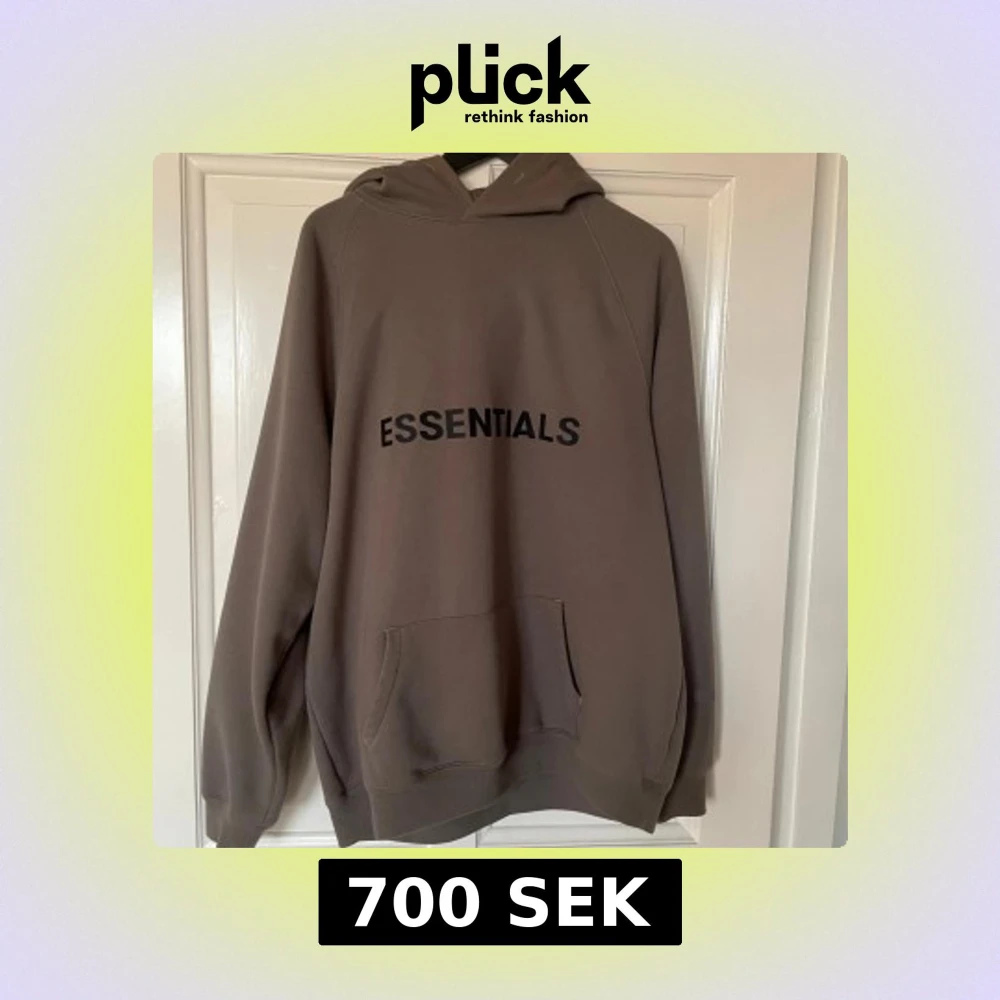 Säljer en snygg brun hoodie från Essentials med texten 'ESSENTIALS' tryckt på framsidan och ärmen. Hoodien har en stor ficka framtill och en bekväm huva. Perfekt för en avslappnad stil.