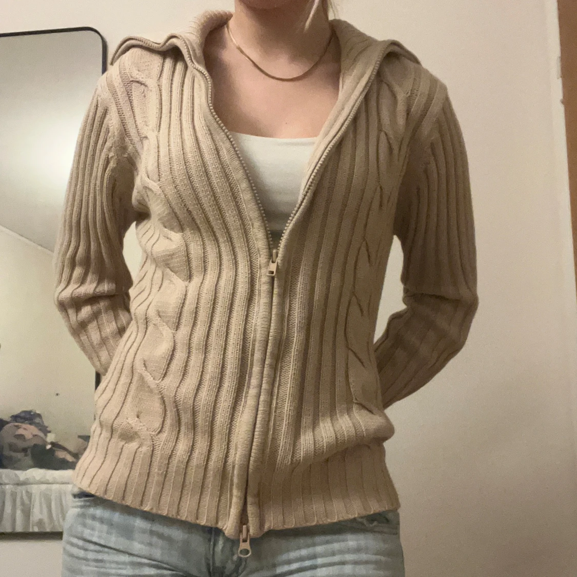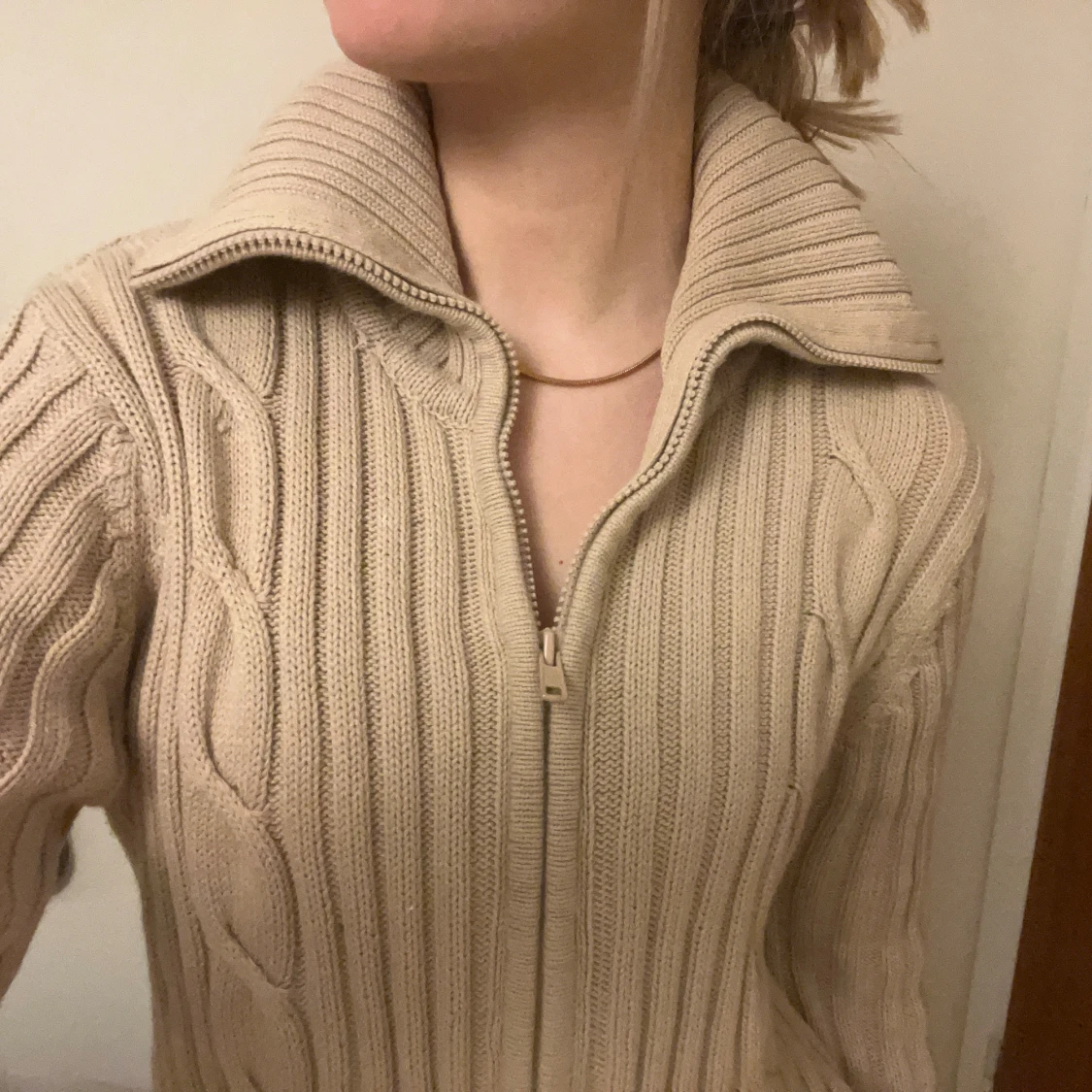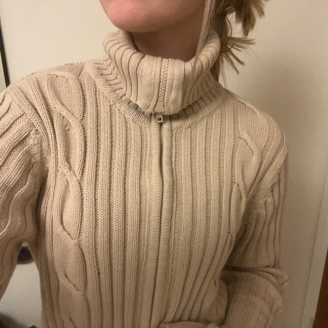Stickad kofta med dragkedja och hög krage, står att den är storlek L men jag har vanligtvis S❣️