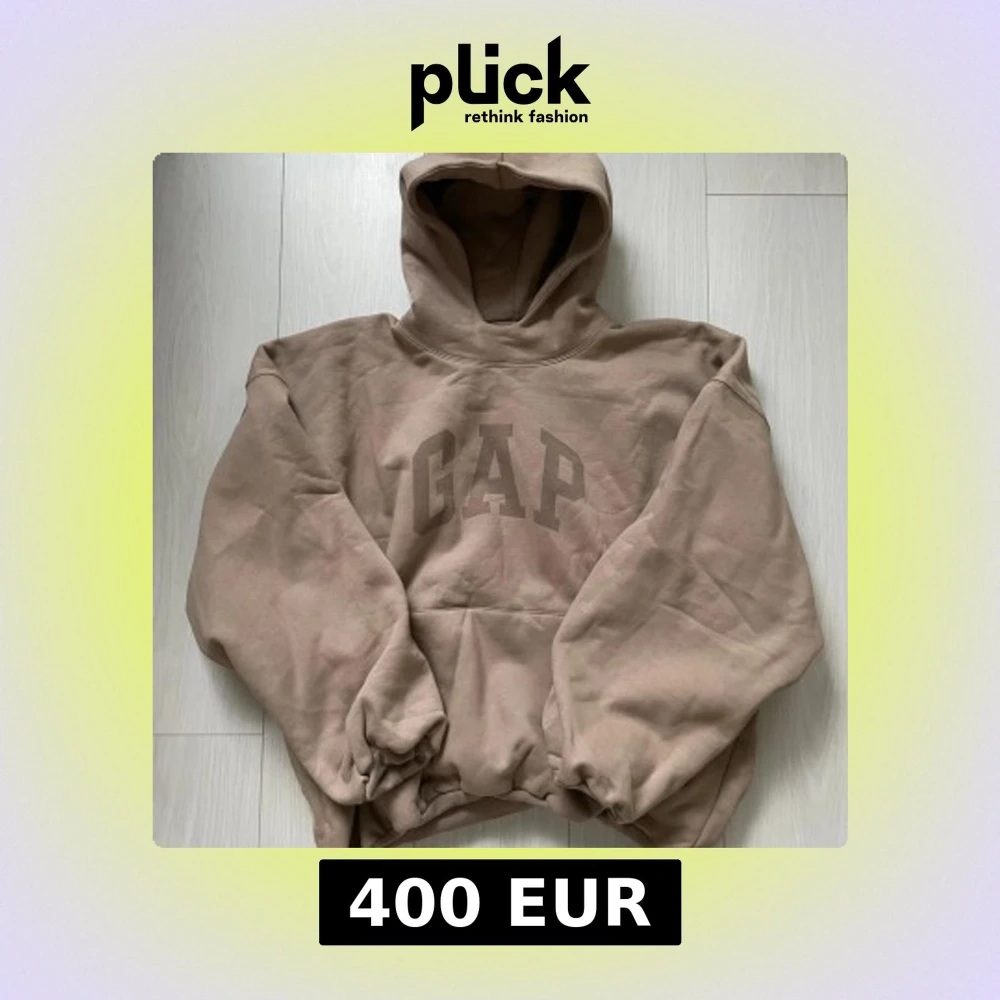Säljer en beige hoodie från YZY x GAP med stor logga framtill och en vit fågeltryck på baksidan. Hoodien har en rymlig passform och en stor ficka framtill. Perfekt för en avslappnad stil.