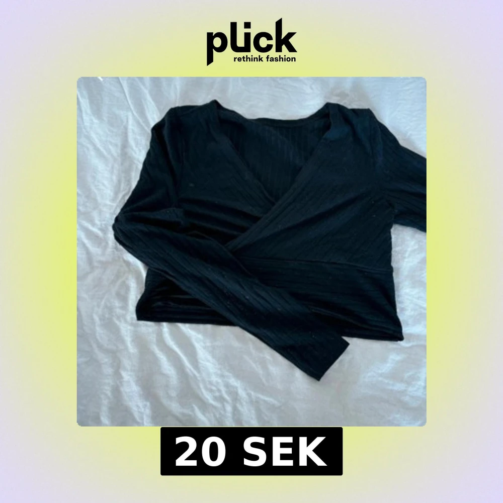 Snygg svart omlottopp med långa ärmar och ribbad struktur. Perfekt för en stilren look.