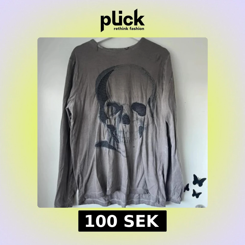 Grå långärmad tröja med dödskalle