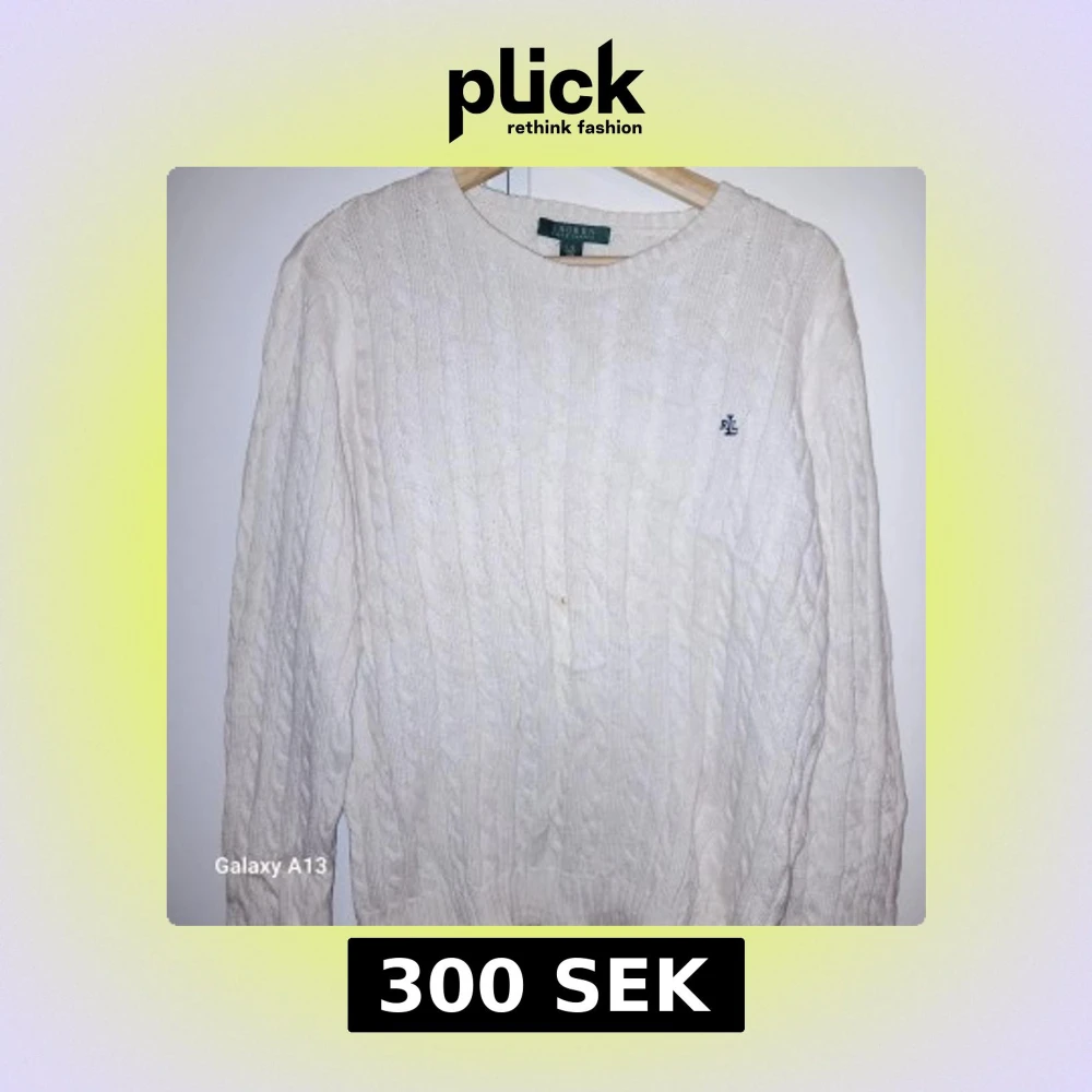 Säljer en klassisk vit kabelstickad tröja från Lauren Ralph Lauren. Tröjan har en rund halsringning och ett diskret broderat logotyp på bröstet. Perfekt för en stilren och tidlös look.