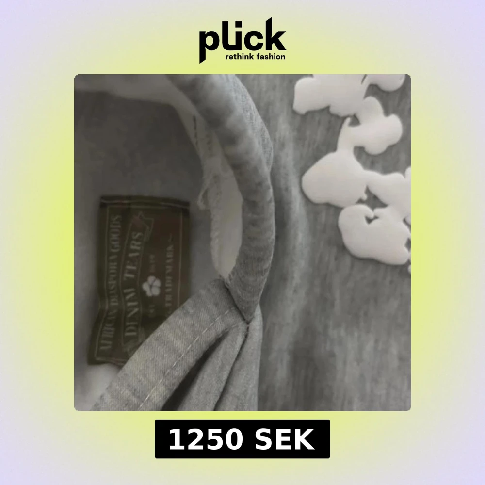 Säljer en grå hoodie från Denim Tears med ett unikt vitt blommönster över hela tröjan. Den har en klassisk känguruficka och en bekväm huva. Perfekt för en avslappnad stil.