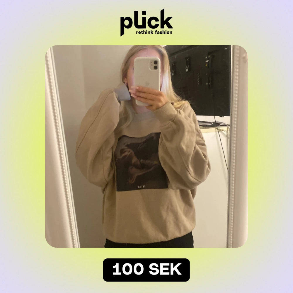 Säljer en supermysig beige sweatshirt med ett tryck på framsidan. Den har en loose passform och långa ärmar, perfekt för chilliga dagar. Passar både till vardags och för en avslappnad stil. 🧡
