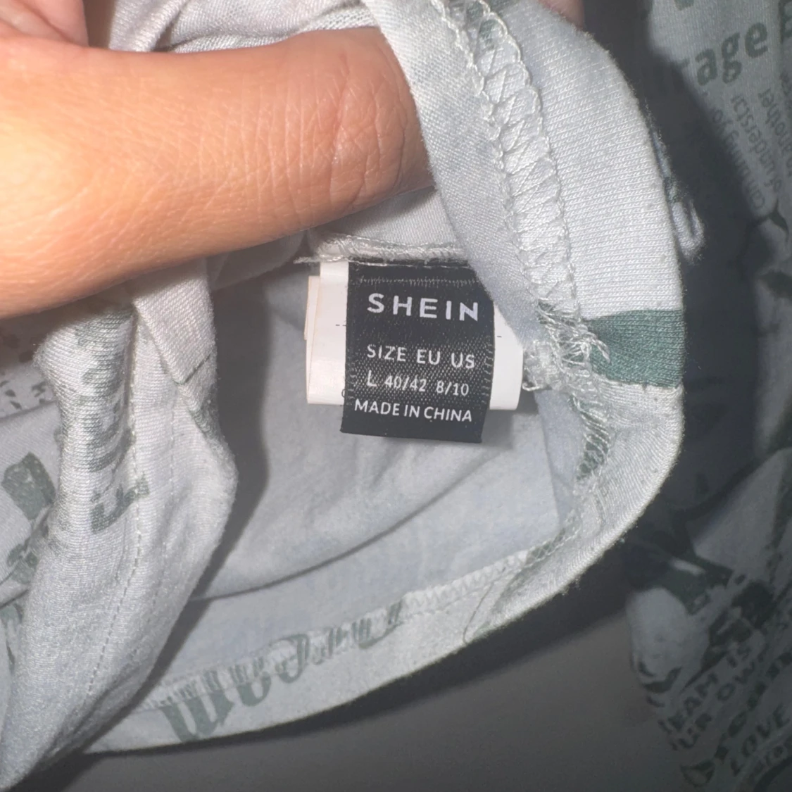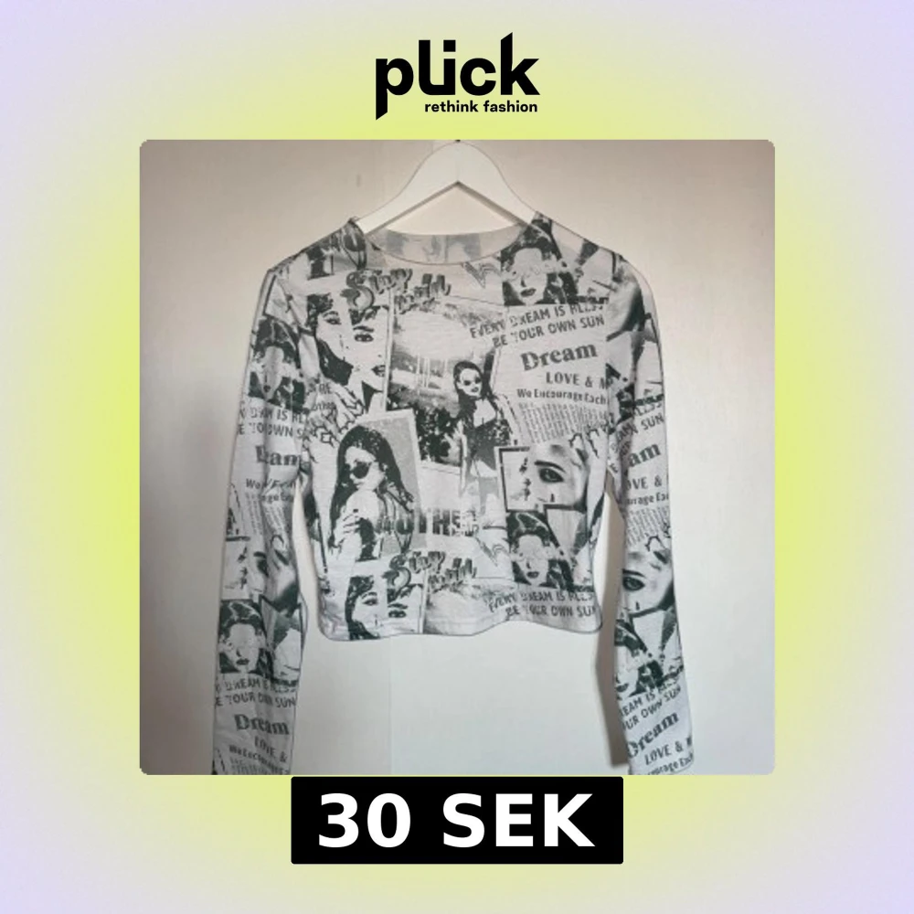 Säljer en cool långärmad tröja från Shein med tryck av olika bilder och texter. Tröjan har en croppad passform och är perfekt för en trendig look. Passar bra till jeans eller kjol för en avslappnad stil. Den ser svartvit ut på bild men är mörkgrön! Stl L