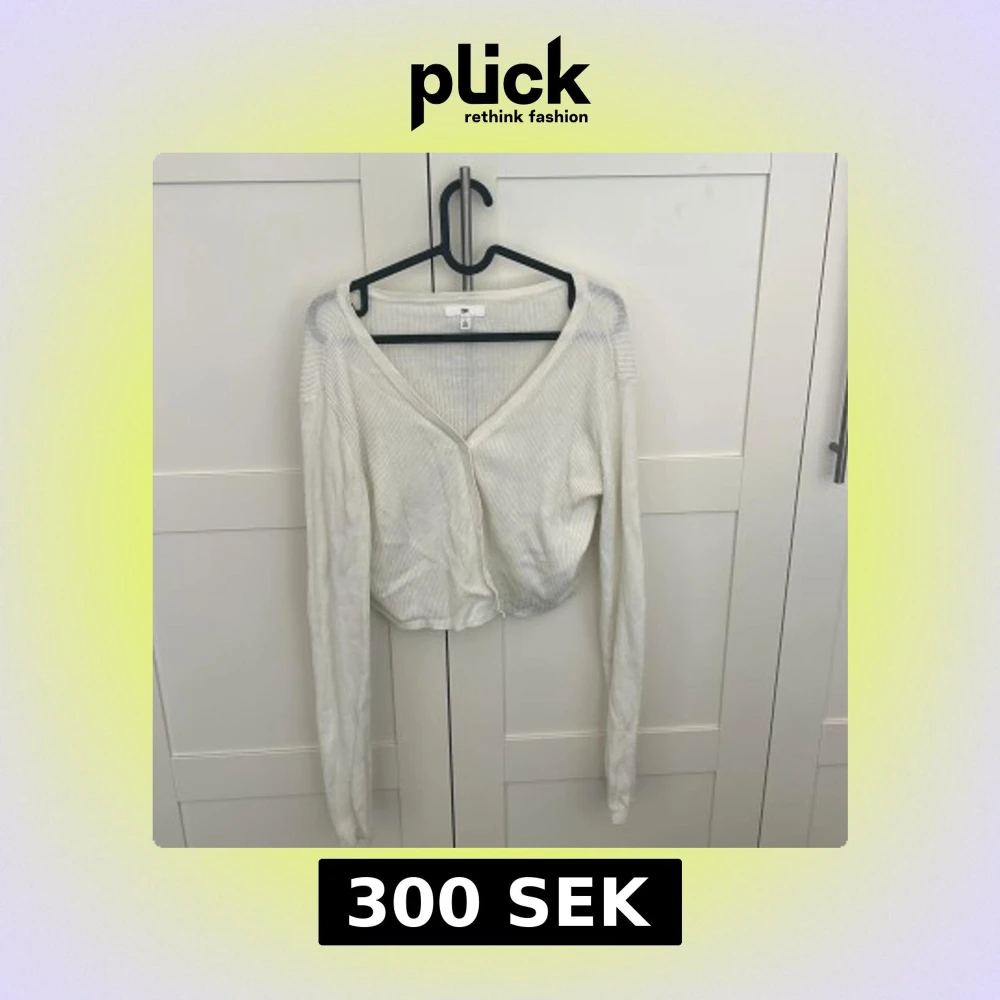 Säljer en vit croppad kofta från BP. som var använd en gång. Koftan är väldigt bekväm och har ett skönt och mjukt material och den är i storlek L.