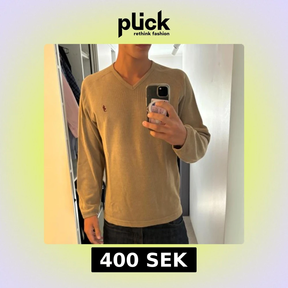 Säljer en beige v-ringad tröja från Marlboro Classics i bomull. Tröjan har lång ärm, diskret broderad logga i vinrött på bröstet och ribbade muddar vid hals och ärmslut. Perfekt för dig som gillar enkel och stilren design.