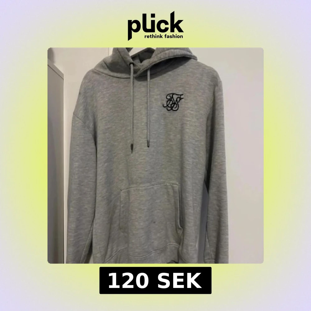 Säljer en stilren grå hoodie från SikSilk med svart broderad logga på bröstet. Tröjan har huva med dragsko och en stor magficka framtill. Lite Nopprig annars bra skick
